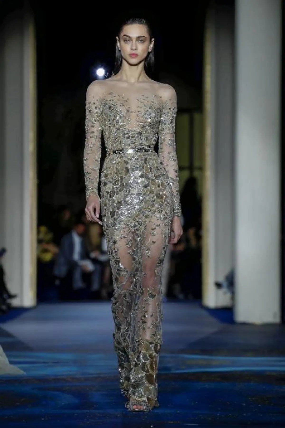 وأبدع المصمم زياد نكد Ziad Nakad فساتين فخمة بتصميم بسيط، مثل الفستان الأزرق بالقصّة العمودية مع التنورة الإضافية المنفوشة، والفستان بالقماش الشفاف والمغطى بتطريزات معدنية برّاقة.