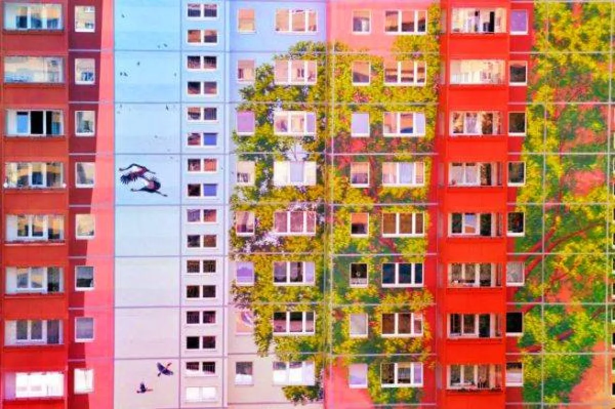 ألوان زاهية، وأشجار باسقة، وأزهار ملونة، وطيور تحلق في السماء، وحيوانات أليفة تتنزه مع أصحابها، هذا مشهد يتمناه كل منا عندما يفتح شرفة منزله كل صباح. والأمنية تحولت إلى حقيقة في أحد الأحياء السكنية في العاصمة الألمانية برلين، بريشة فنانين فرنسيين من شركةCITE CREATION المبتكرة لأكثر من 600 جدارية شهيرة في مدن وعواصم العالم.