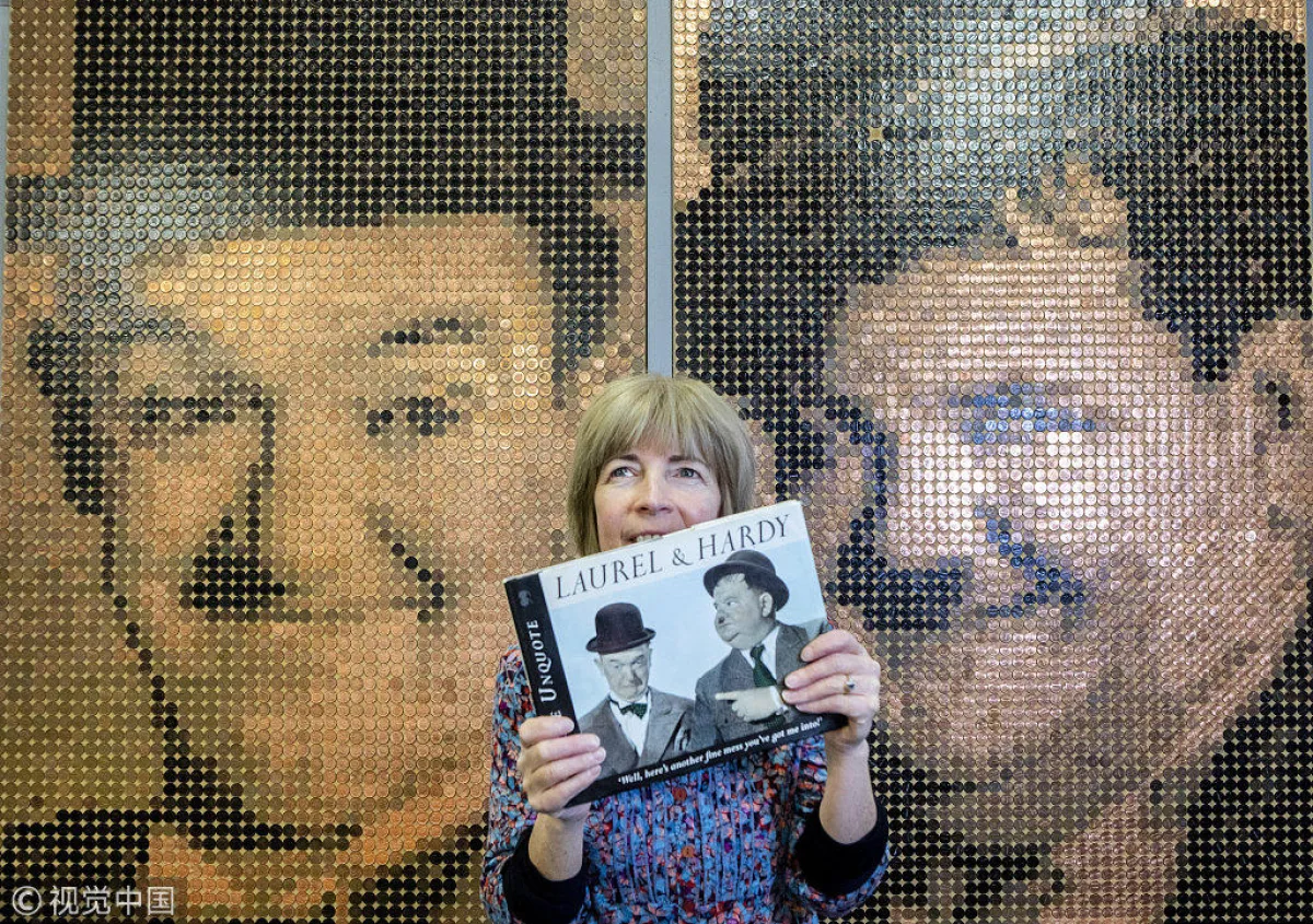 صُممت صور ثنائي الكوميديا «لوريل» و«هاردي» من آلاف العملات المعدنية؛ حيث استخدمت لوحة «ستان لوريل» المولود في لانكشاير ببريطانيا، بنسات بريطانية بلغت 4056 بنسًا، بينما استخدمت لوحة «أوليفر هاردي» المولود في هارلم، جورجيا بأمريكا، سنتات أمريكية بلغت 4056 سنتًا أمريكيًا. وعلى الرغم من أن «لوريل» ولد في إنجلترا، فقد قضى بعض الوقت في أسكتلندا، وكان أول أدائه الاحترافي في سن المراهقة، في قاعة الموسيقى بانوبتيكون في جلاسكو. وعند عرض اللوحات على الجمهور، حازت على إعجاب الجميع حيث وصف الفنان «جوليان بيكفورد» اللوحات الفنية بأنها «أعمال فنية رائعة»، بينما أضافت «أليسون شتراوس»، مسؤولة التطوير الفني: «نحتاج جميعًا إلى المزيد من لوريل وهاردي في حياتنا».