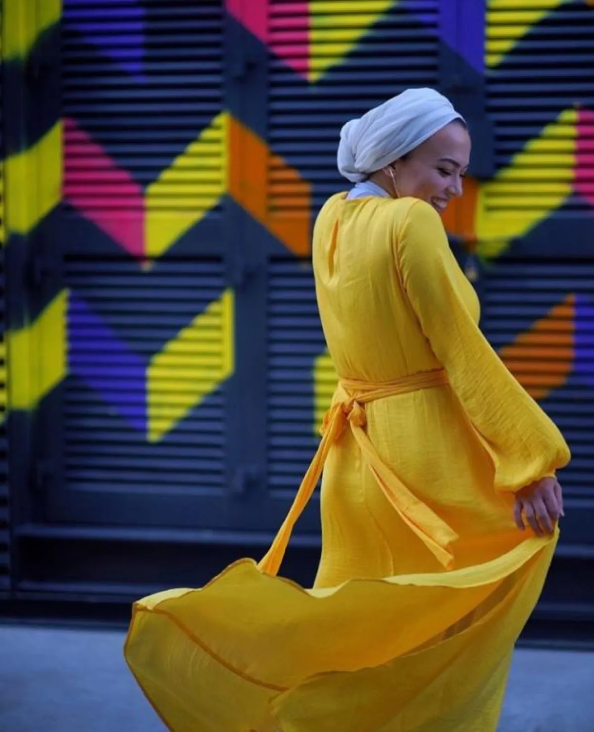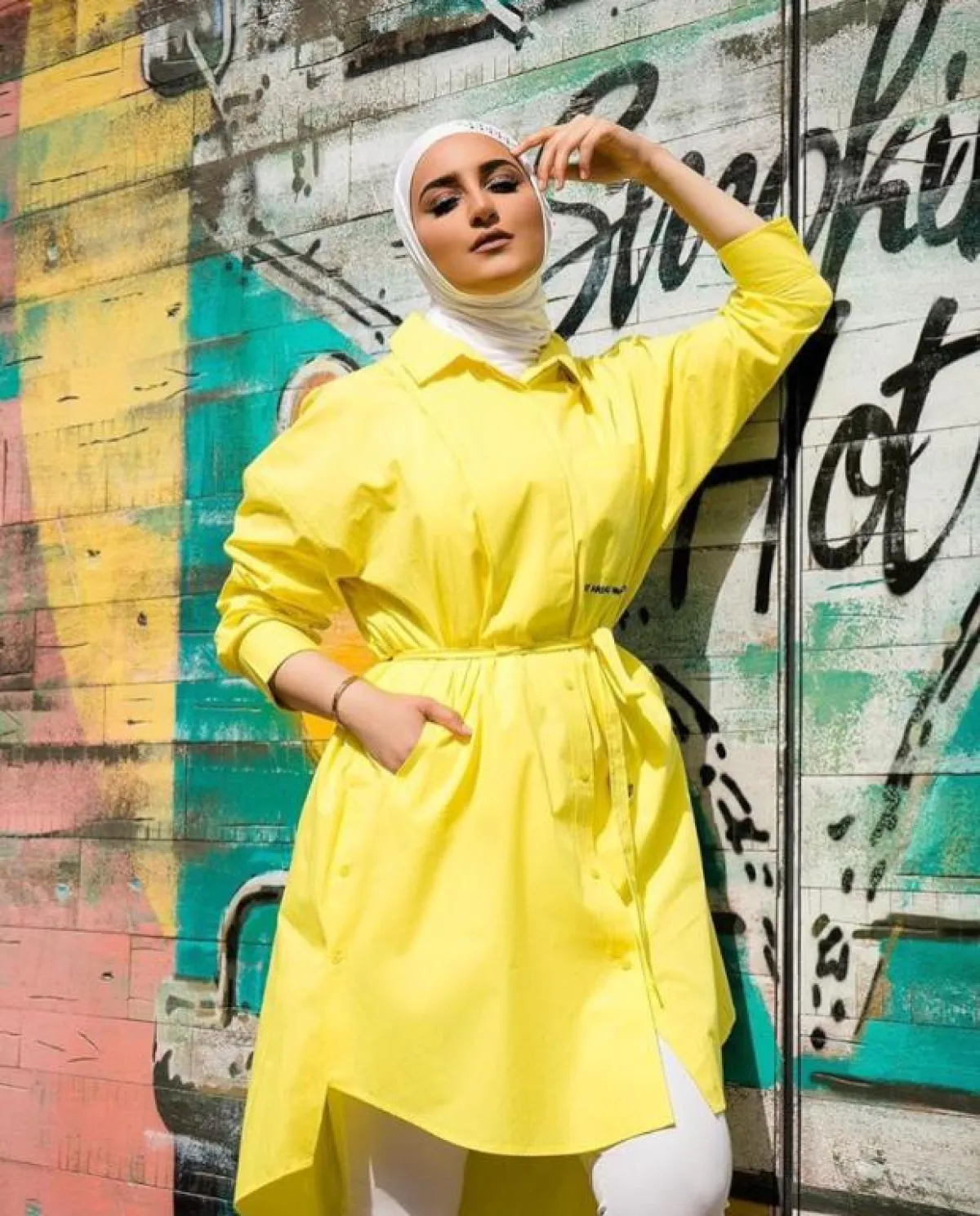 هذه الموضة لم تخصّ المحجبات فقط، بل أصبحت موضة الفساتين الطويلة أساسية بخزانة أيّ صبيّة، اعتمديها بألوان منعشة كالأصفر المتربع على عرش الموضة هذا العام، بخامات الكتان أو القطن، ونسقي معها حجابًا أبيض وشنطة خوص.