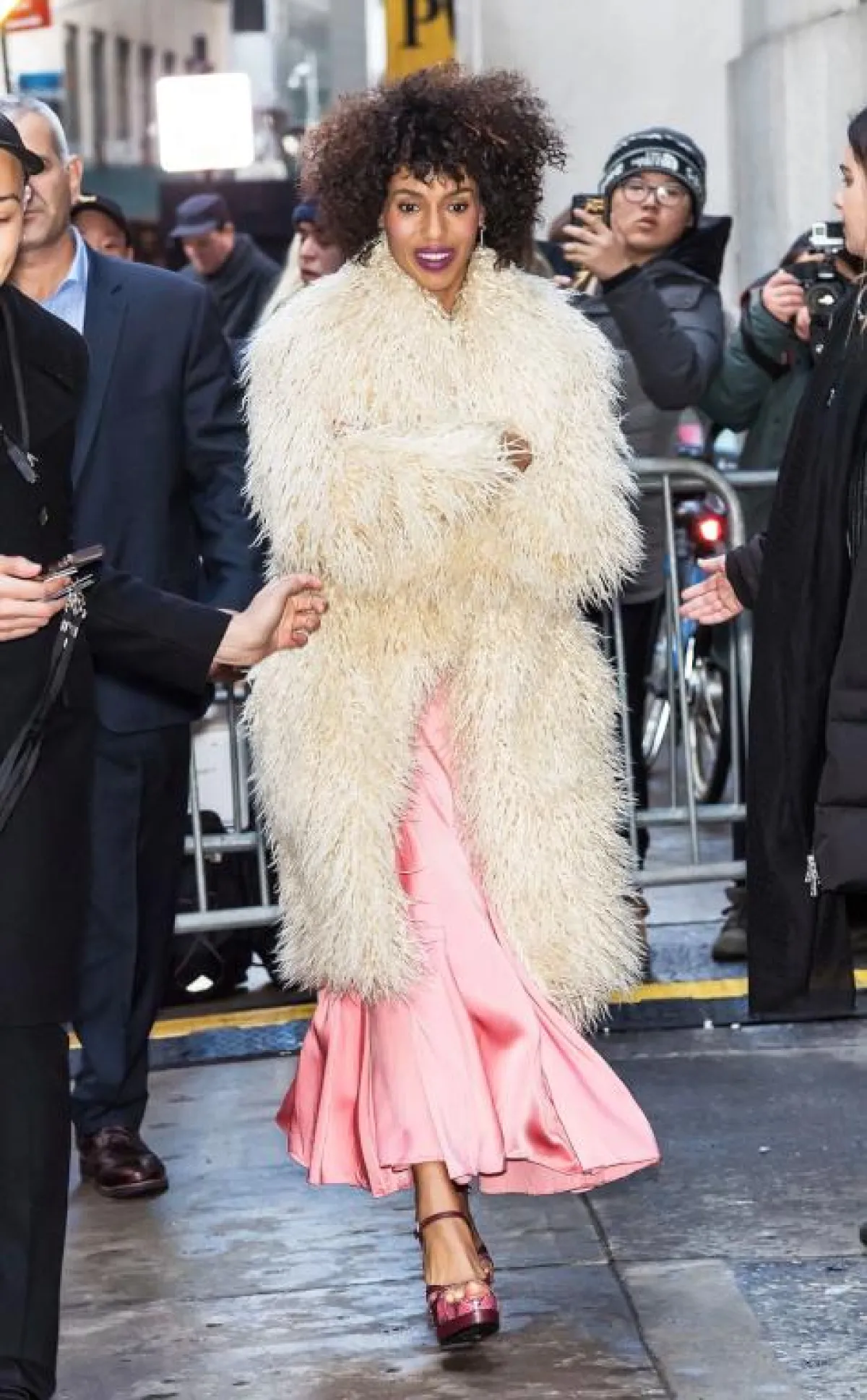 اختارت سارة جيسيكا باركر اطلالة مونوكروم باللون الأسود، مكونة من تنورة ميدي مكسرة مع توب بفتحة صدر V، ورغم أنها اطلالة قاتمة، إلا أنها تشعّ أنوثة وتناسب امرأة في هذا العمر.