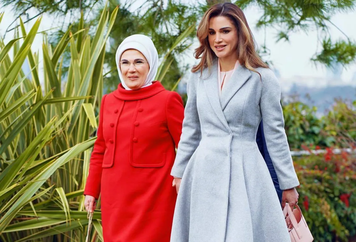الملكة رانيا تعتمد الأخضر بظلال الزيتون والنعناع