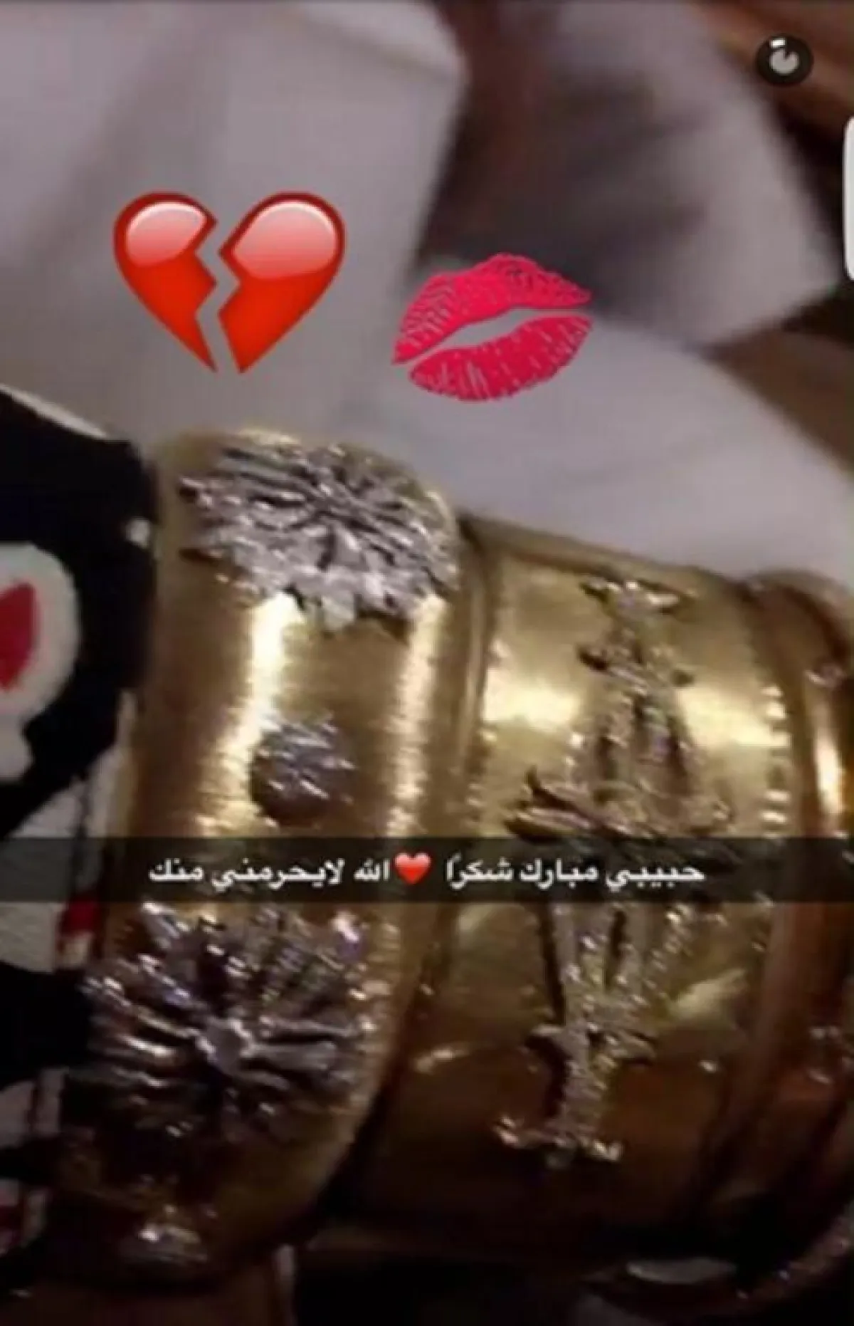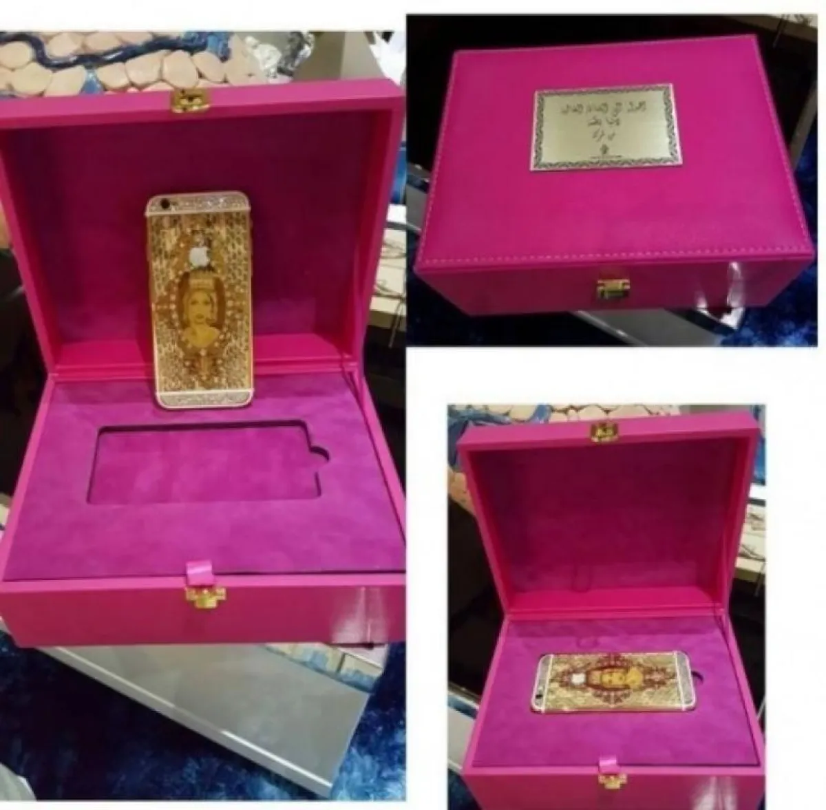 أما زوج النجمة ديما بطمة فأهداها هدايا ثمينة في ليلة الزفاف وفقاً للتقاليد المغربية، وقدم لها هاتفاً مطلياً بالذهب وعليه صورتها في الخلف بمناسبة مرور عامان على زواجهما.