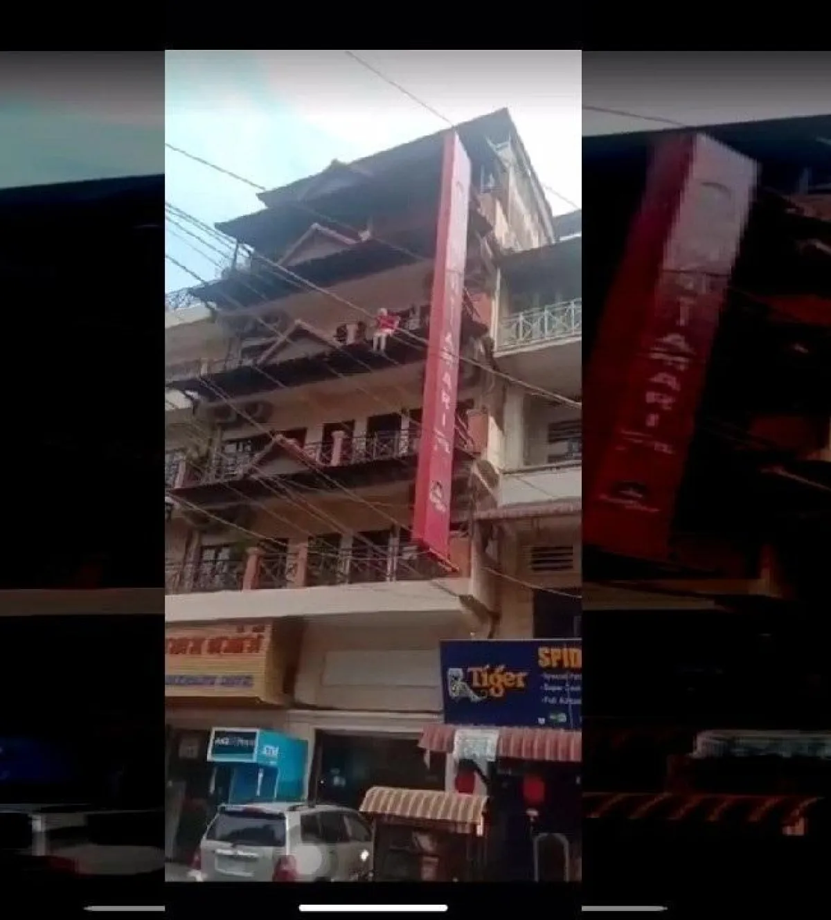 وأظهر مقطع الفيديو الذي تم تصويره في أحد الأحياء الصينية، امرأة تجلس على حافة بلكونة منزلها بالطابق الرابع في البناية، وأخذت تهدد بالانتحار حيث تجمع حشد من المواطنين في الشارع وحاول البعض التحدث معها وإقناعها بالعدول عن قرارها.