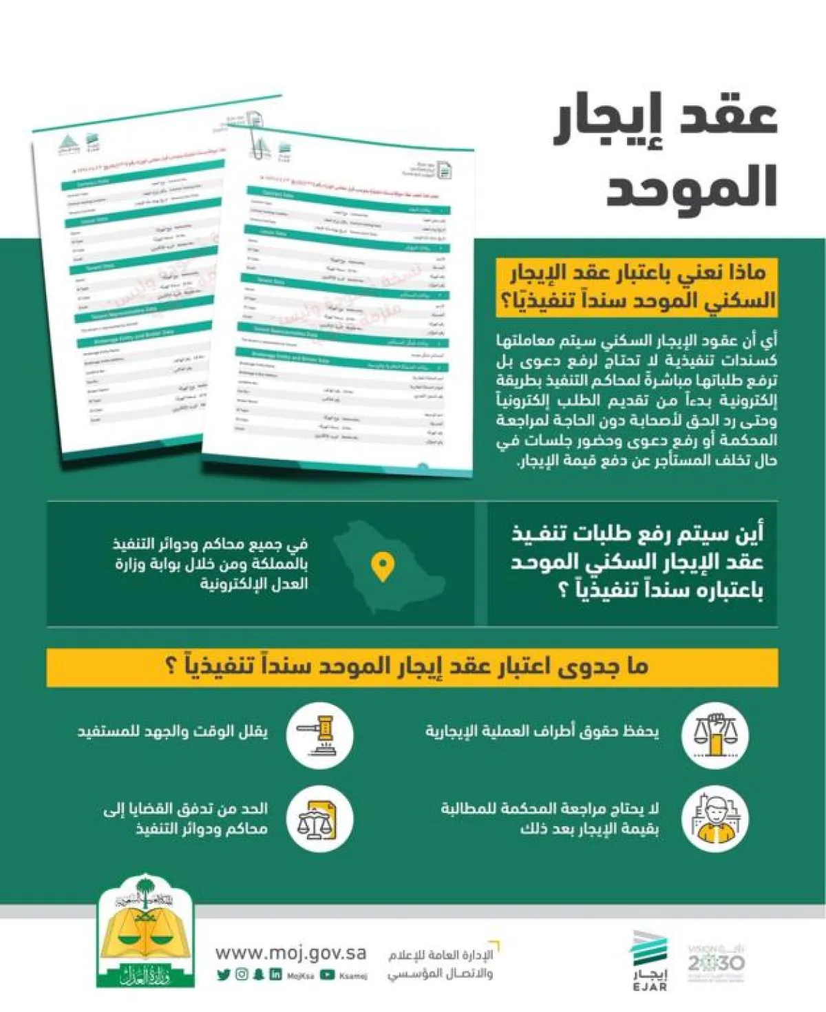 بلغت أعداد القضايا ضد المسجلين في عقد "الإيجار السكني الموحد"، والمماطلين في سداد قيمة الأجرة عند استحقاقها نحو 1300 قضية، وذلك وفقاً لما كشفت عنه مصادر مطلعة بوزارة العدل.