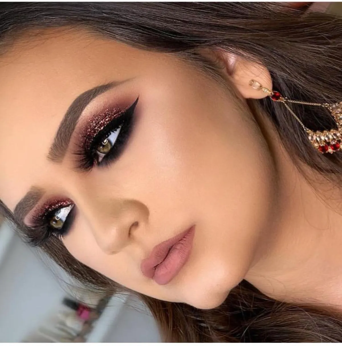 أما أحمر الشفاه فسيكون ورديًّا أو شفافًا، أو بدرجات النود المطفيّة، وفي ما يخص الغلوس اللامع فسيكون مناسبًا أيضًا مع المكياج المخملي الناعم.
