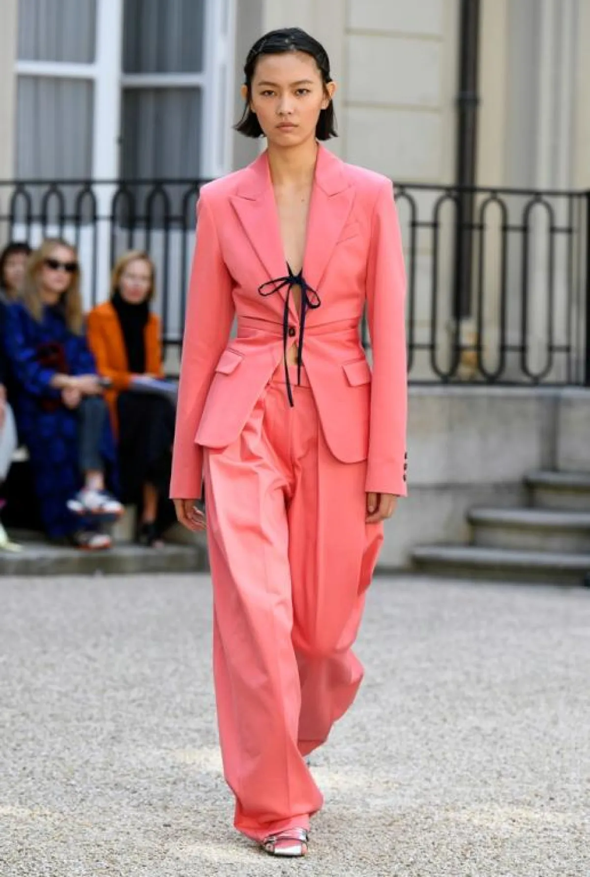 - إذا كنت ترغبين بطلّة كلاسيكيّة ناعمة، يمكنك مزج اللون المرجاني مع اللون الأبيض. يعني مثلاً ارتداء جاكيت أو بدلة بهذا اللون مع قميص حريريّ أبيض.