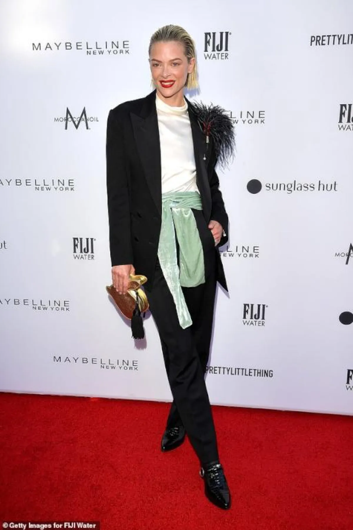 دائمًا تختار النجمة الشقراء “كايت هادسون” Kate Hudson أجمل اطلالات على السجادة الحمراء، واطلالتها في حفل الأمس أيضًا كانت موفقة، حيث أطلت بفستان من “أوسكار دي لا رينتا” Oscar de la Renta من قماش الموسلين باللون الأحمر، مشكوك بحبات براقة من الكريستال، وقد أكملت الاطلالة بشنطة يد حمراء ومجوهرات ناعمة.
