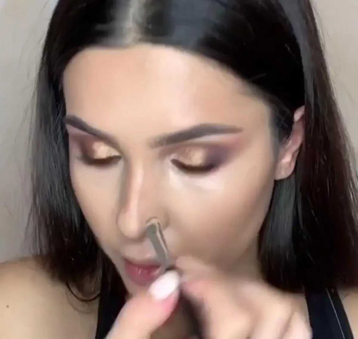 2- بلون بودرة الكاكاو او البني المحمر يأتي اللّون الثالث برسمة نصف دائريّة أسفل عظمة الحاجب، ولا تنسي ان ترسمي خط ايلاينر رفيع بالظلال على خط الرموش العلوي وموهييه وادمجيه مع الظلال البني.
