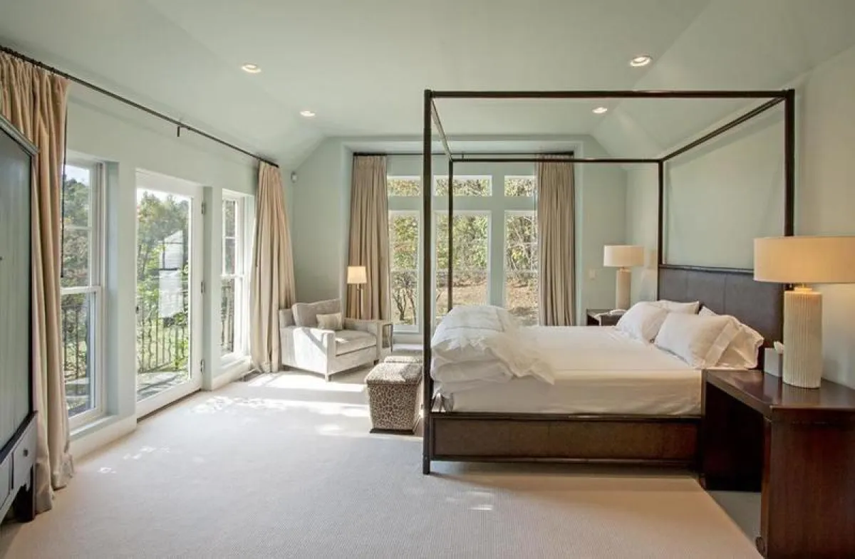 في قصر النجمة العالميَّة بيونسيه الواقع في"هامبتون" الشرقيَّة بنيويورك، تتصف غرفة النوم الرئيسة بالأناقة، حيث يبدو السرير المزدوج نقطة الارتكاز فيها، ويحتلُّ مساحة تقابل الموقد المحاط بجلسة وثيرة. ويتسلَّل اللون الأخصر إلى الغرفة، من خلال بعض القطع والإكسسوارات.