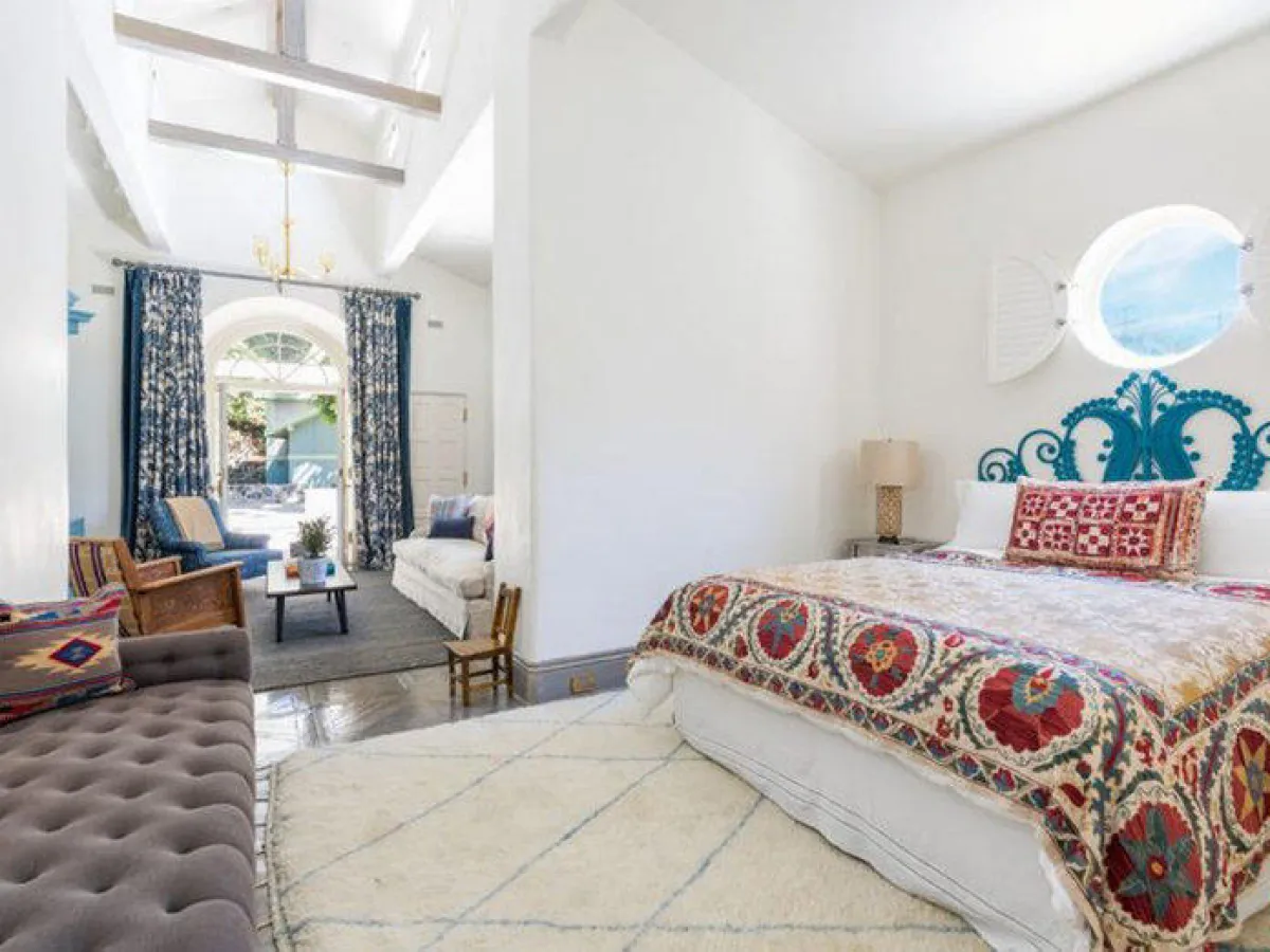 على الرغم من أناقة غرفة النوم الرئيسة في منزل المغنيَّة والممثِّلة "ليدي غاغا" الواقع في محيط شاطئ "زوما" بمدينة ماليبو في كاليفورينا، تبعد ديكورات هذا الحيِّز عن التكلُّف، إذ تكتفي المساحة بالأثاث الضروري المُلوَّن باللون الأبيض.