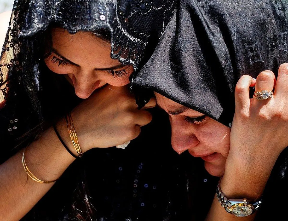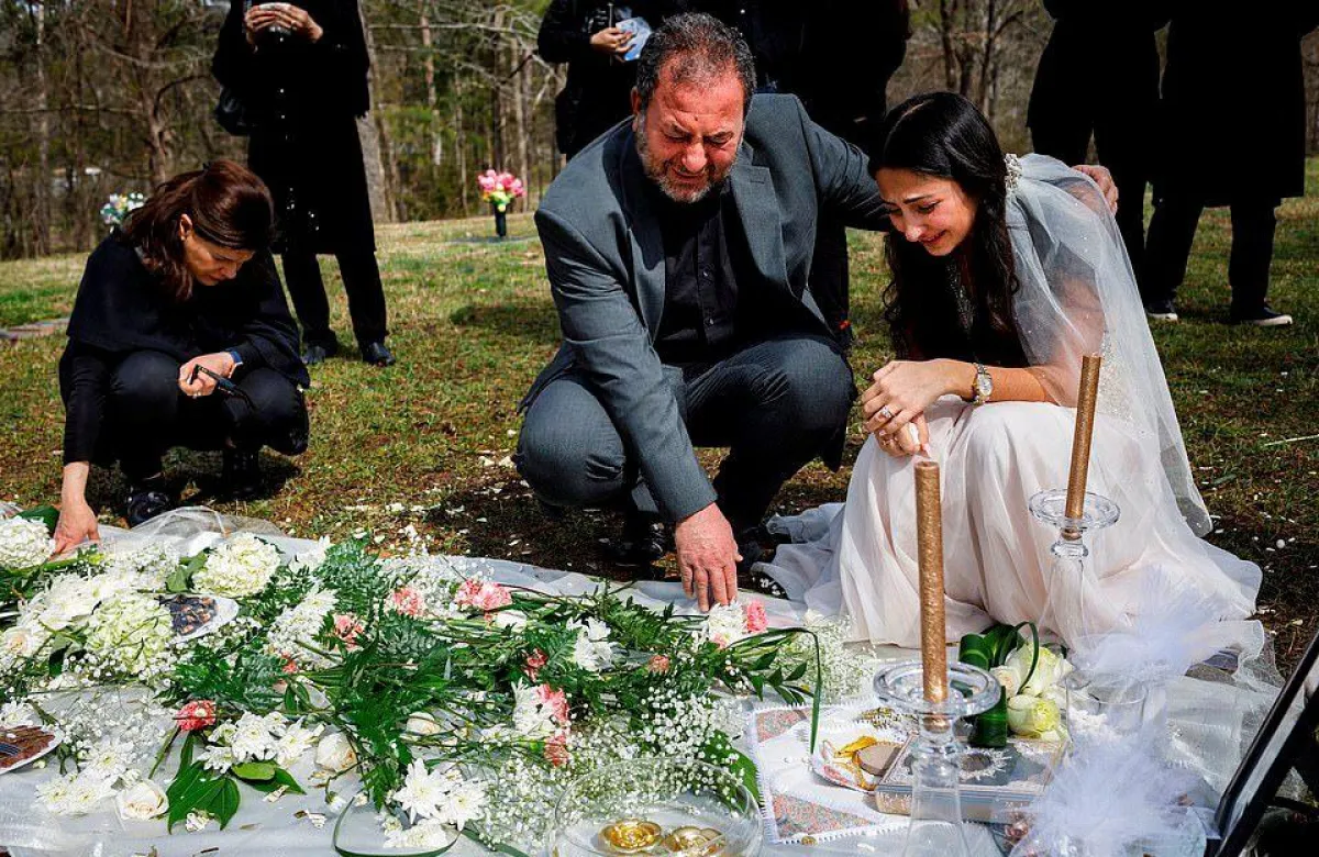 وفي الصور المؤثرة التي التقطت لسارة بالوش، في حدائق «هاربيث هيلز ميموري»، كانت «العروس المكلومة»، تبكي تحت غطاء القماش المنسدل على وجهها الـ«طرحة»، وكانت تركع ألماً على ركبتيها فوق العشب، وعائلتها وأحبتها كانوا حولها يبكون ويتلون صلواتهم وآيات من القرآن الكريم على روح «شريفي». قبل أن تُعلق «بالوش» وهي في حالة شديدة من البكاء: «كان من المفترض أن نكون معاً. أنا آسفة حقاً محمد، أنا آسفة جداً، آسفة جداً».
