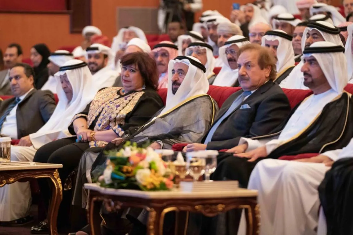 وشاهد حاكم الشارقة والحضور فيلماً يرصد أبرز محطات المسيرة الفنية للشخصيتين المكرمتين.