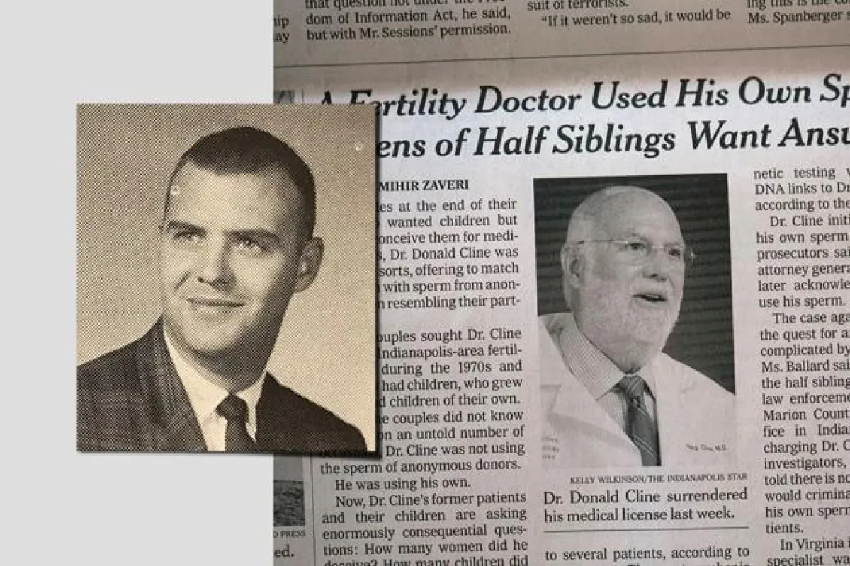 ووفقًا لصحيفة «ذي أتلانتيك» المحلية، وموقع «روسيا اليوم» فإن طبيب الخصوبة، دونالد كلاين، استخدم سائله المنوي لتخصيب مريضاته منذ أوائل سبعينيات القرن الماضي. وأخبرهن أن أفراد الطاقم الطبي هم الذين تبرعوا بحيواناتهم المنوية «في ذلك الوقت لم يكن هناك بنوك للحيوانات المنوية».