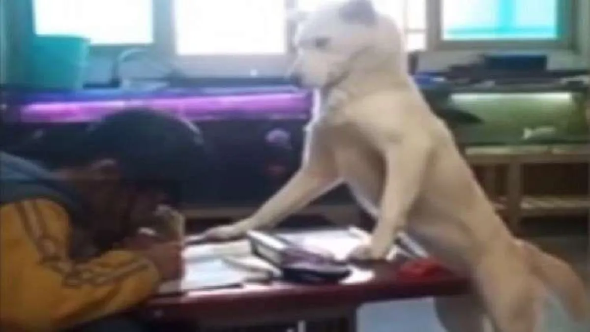 وأكد الرجل أن ابنته تعاني من تشتت التفكير؛ بسبب انشغالها بهاتفها الذكي، وهذا ما يُصرفها عن التركيز على دروسها، وقال: «أشرت إلى الطاولة وأمرت الكلبة بأن تراقب ابنتي أثناء دروسها».