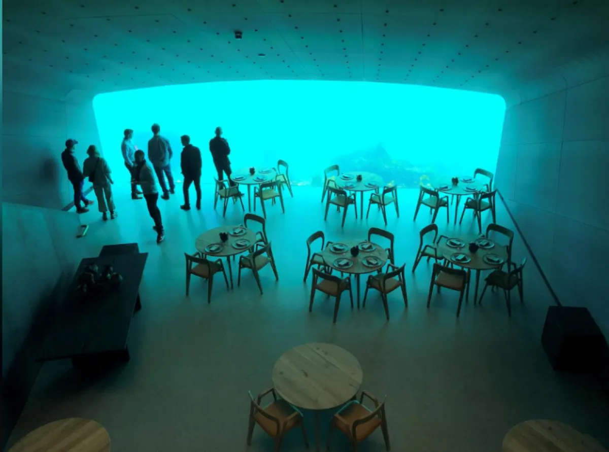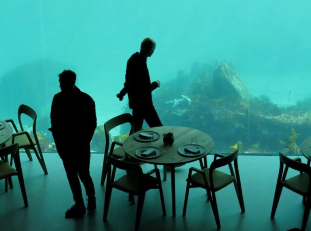 افتتح أمس أول مطعم في قارة أوروبا تحت الماء، والذي يقع جنوبي النرويج، وحجز فيه أكثر من سبعة آلاف شخص بالفعل لتناول الطعام وسط الأسماك والكائنات البحرية المختلفة.