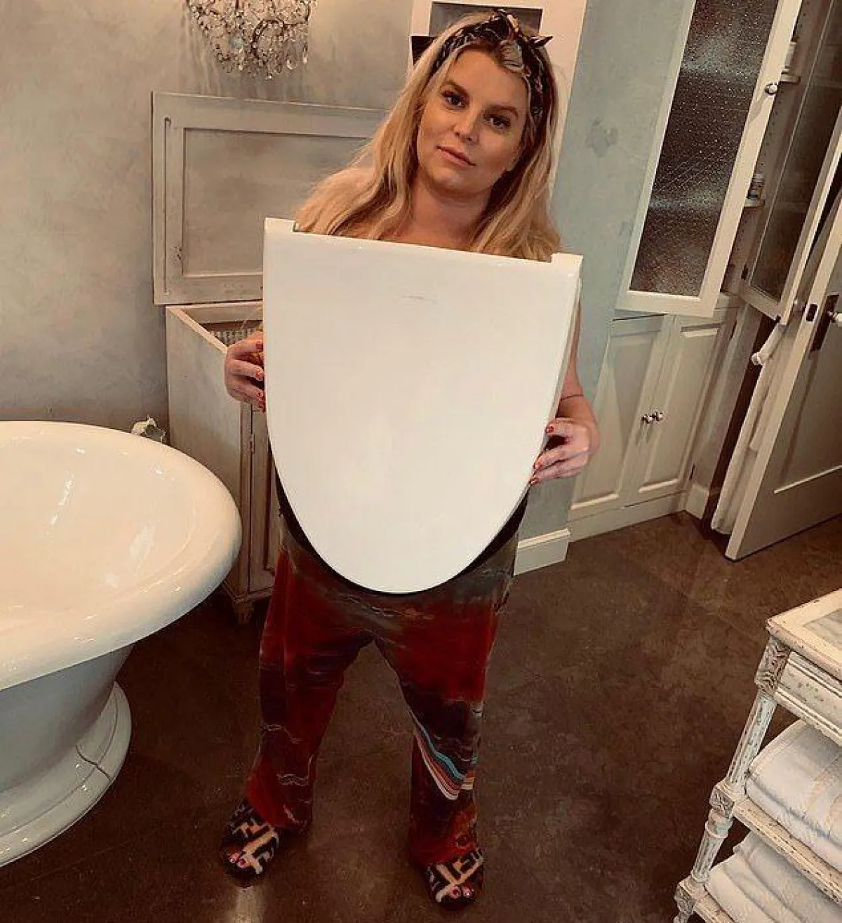 وقبل موعد ولادتها، نشرت جيسيكا صورة لها بالبكيني عبر حسابها على موقع انستقرام، وقد ظهر بطنها منتفخ بشكل كبير، وعلَّقت: "جيسيكا المُغرية". كما لم تمنعها معاناتها مع أعراض الحمل المختلفة كالأرق والآلام ظهر، من نشر صورة فكاهية لها قبل عدة أسابيع وهي تمسك بمقعد المرحاض المكسور، وعلقت مازحة "تحذير..لا تتكىء على كرسي المرحاض عند الحمل".