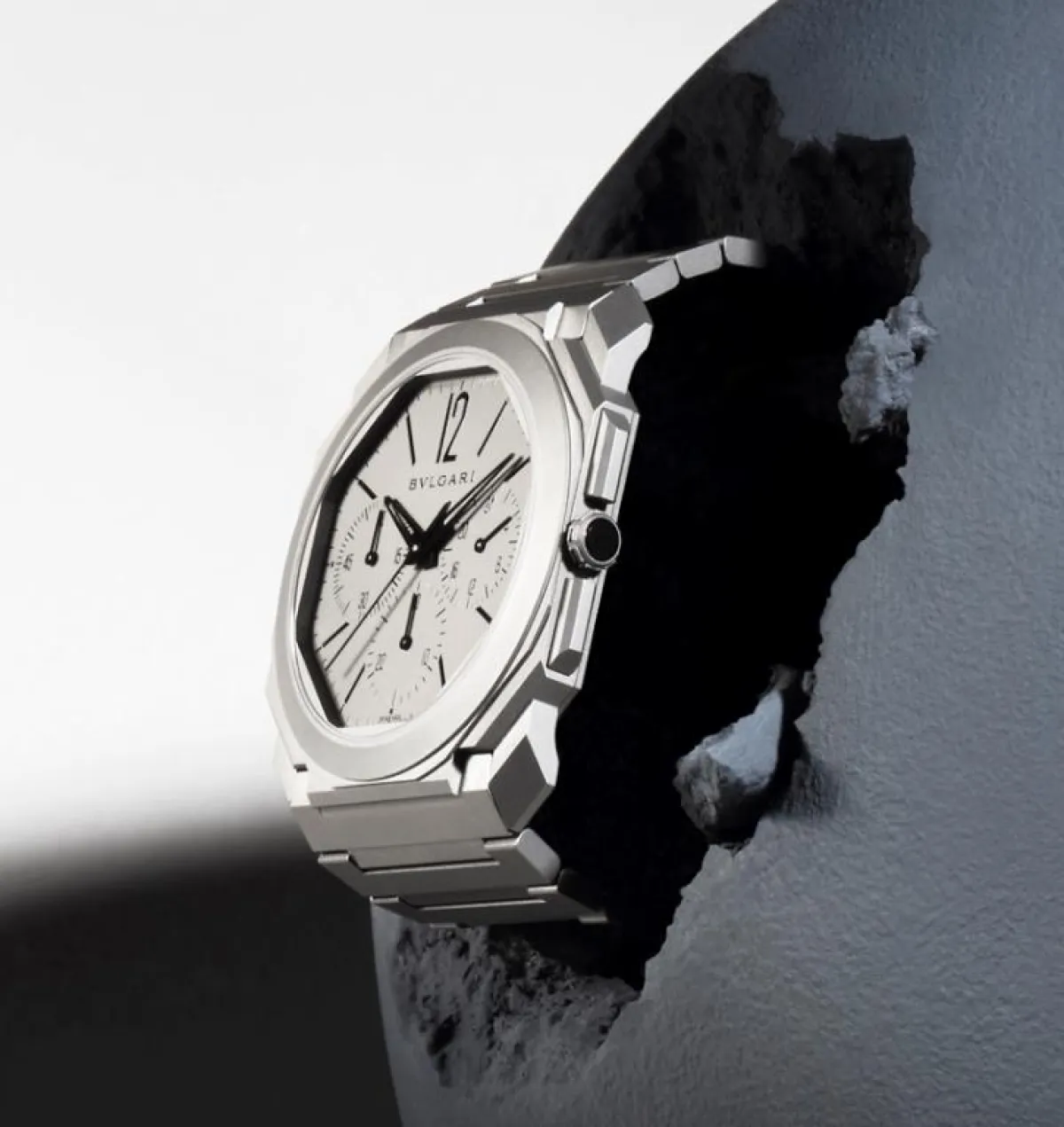 وفي مجموعة ساعات أوكتو، تشكل ساعة أوكتو فينيسيمو كرونوغراف جي أم تي أوتوماتيك العنصر الخامس؛ وبمعنى آخر، النموذج الأمثل فيها الذي تنصهر فيه القدرات التصميمية والتكنولوجية تماماً في هيكل رقيق على نحو رائع وملفت للنظر. ولأنها لم تأتِ بشكل مدور أو مربع، فقد خلقت ساعة أوكتو لنفسها قواعدها الخاصة بها منذ إصدارها لأول مرة، وأسهمت في تعزيز التوجه صوب صناعة ساعات فائقة الرقة والنحافة.