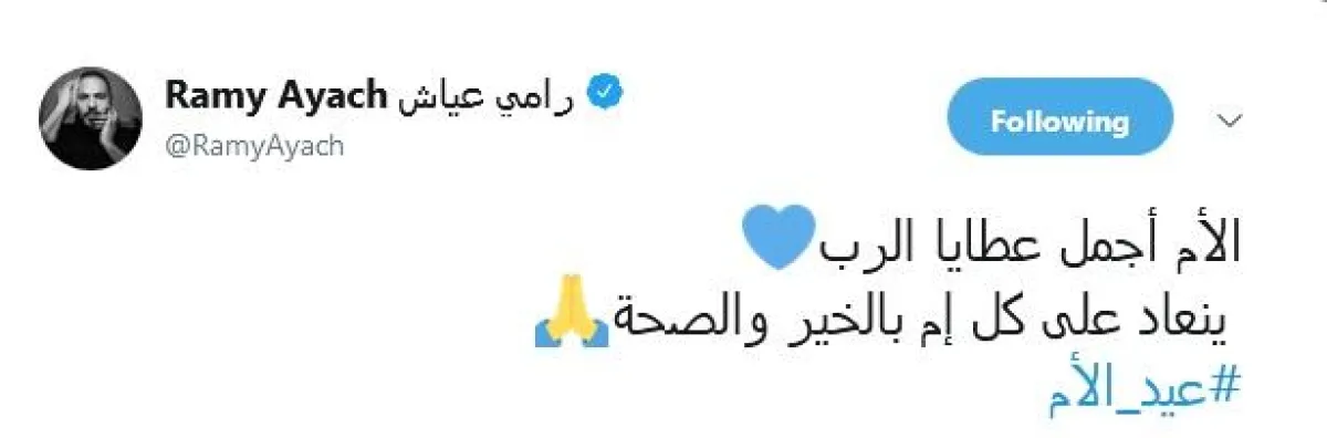 رامي عياش عايد الأمهات وتجنّب الحديث عن والدته الراحلة قائلاً: "الأم أجمل عطايا الرب ينعاد على كل إم بالخير والصحة".