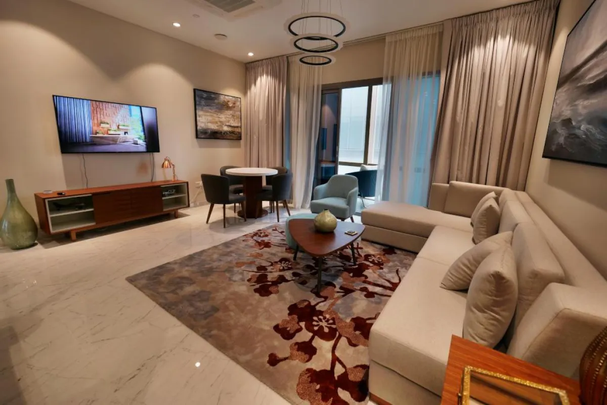 1. إذا استضاف ركن المعيشة السينما، يُفضَّل اختيار شاشة تلفاز كبيرة تتناسب وحجم الركن، مع طلاء الجدار خلفها بالأسود، لتوحيد الرؤية ومنع التشتُّت، والتأثيث بأثاث بسيط، والتقليل من حضور إكسسوارات التزيين، واستخدام ستائر بسيطة.