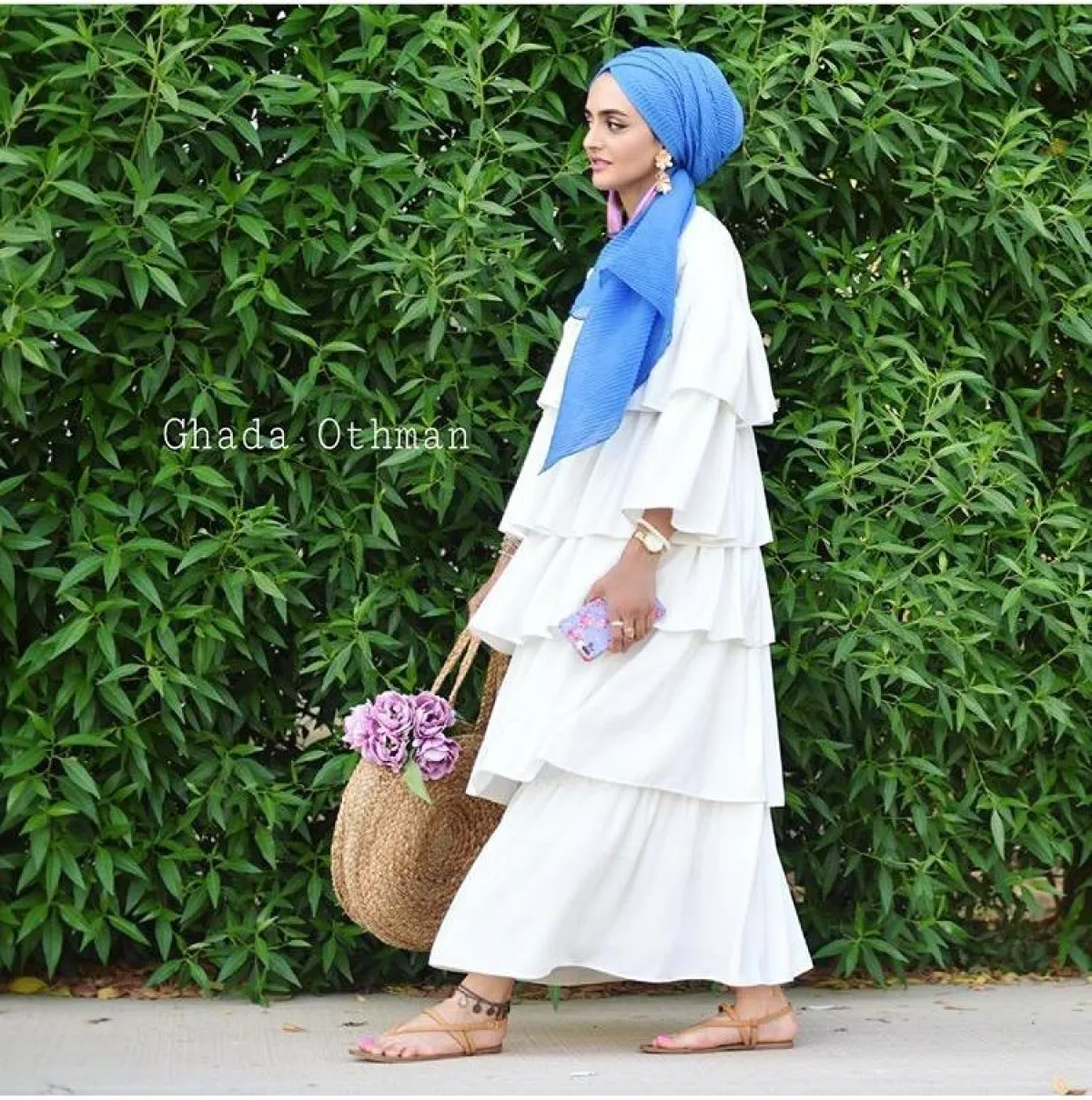 الكشكش ليس فقط من الصيحات الرائجة بقوة هذا العام، بل هو من الصيحات التي تناسب بشكل كبير الفتيات المحجبات، اعتمديه كهذا الفستان الأبيض من غادة عثمان، مع الصندل المفتوح والشنطة الخوص، لاطلالة مستوحاة من أجواء المكسيك.