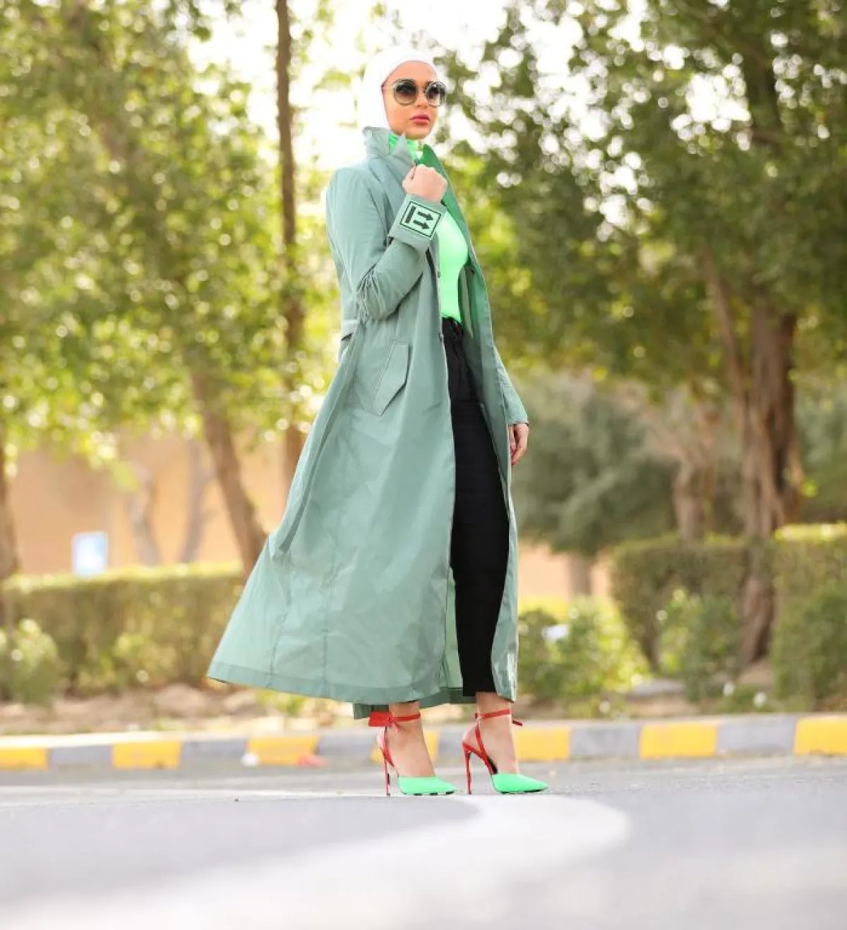يبدو أنّ لون الحذاء سيكون إحدى طرق تعزيز أناقة أيّ امرأة محجبة، لذلك انتعلت المدونة مرمر عددًا من الأحذية المزينة بألوان ربيعية، مثل البرتقالي، والأخضر، والزهري الساطع، والأزرق.