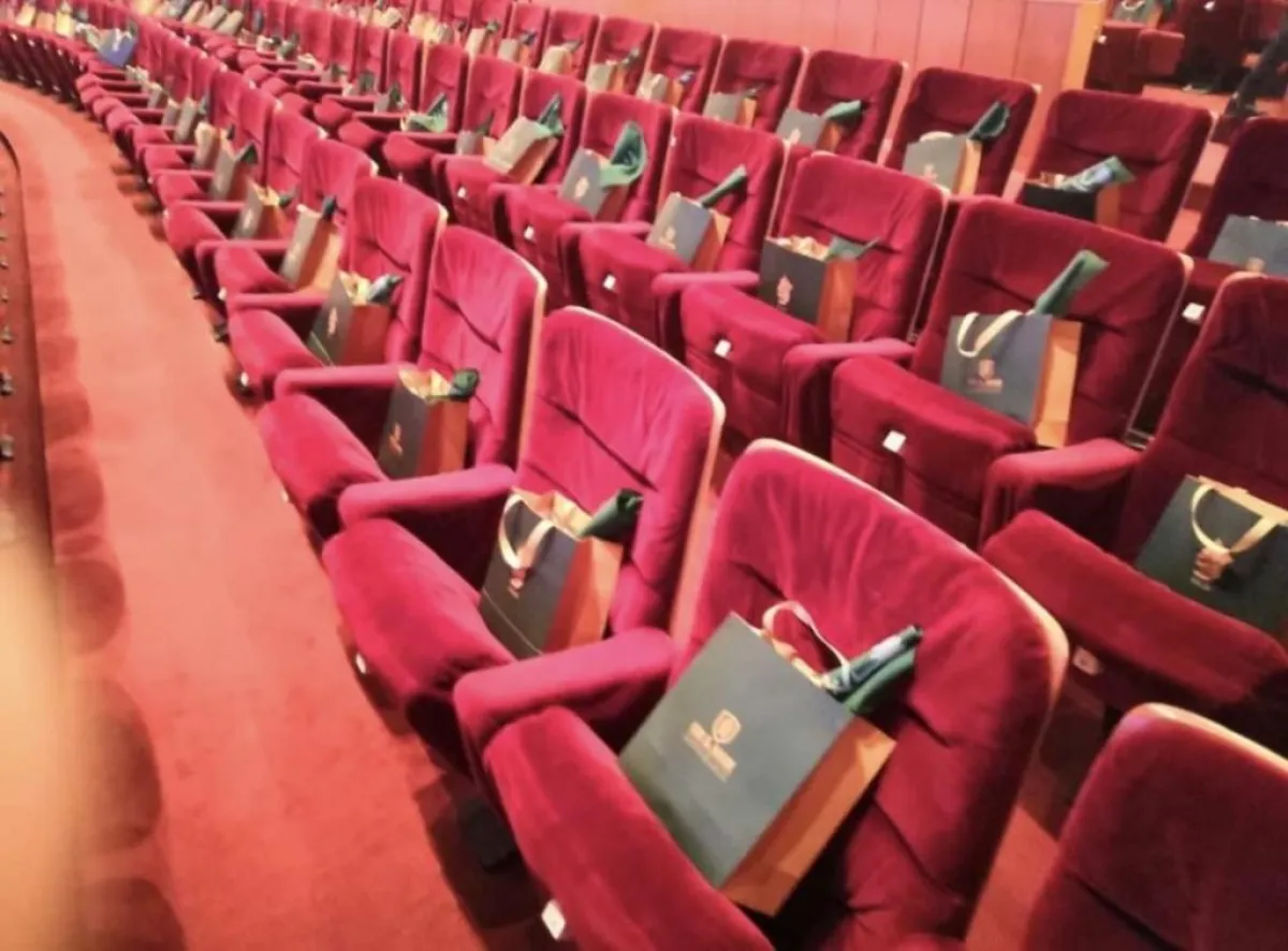 ولم تكتفِ أحلام بذلك، بل قدمت للحضور هديةً عبارة عن حقيبة على كل كرسي في داخلها العلم السعودي وعلبة شوكولاتة.