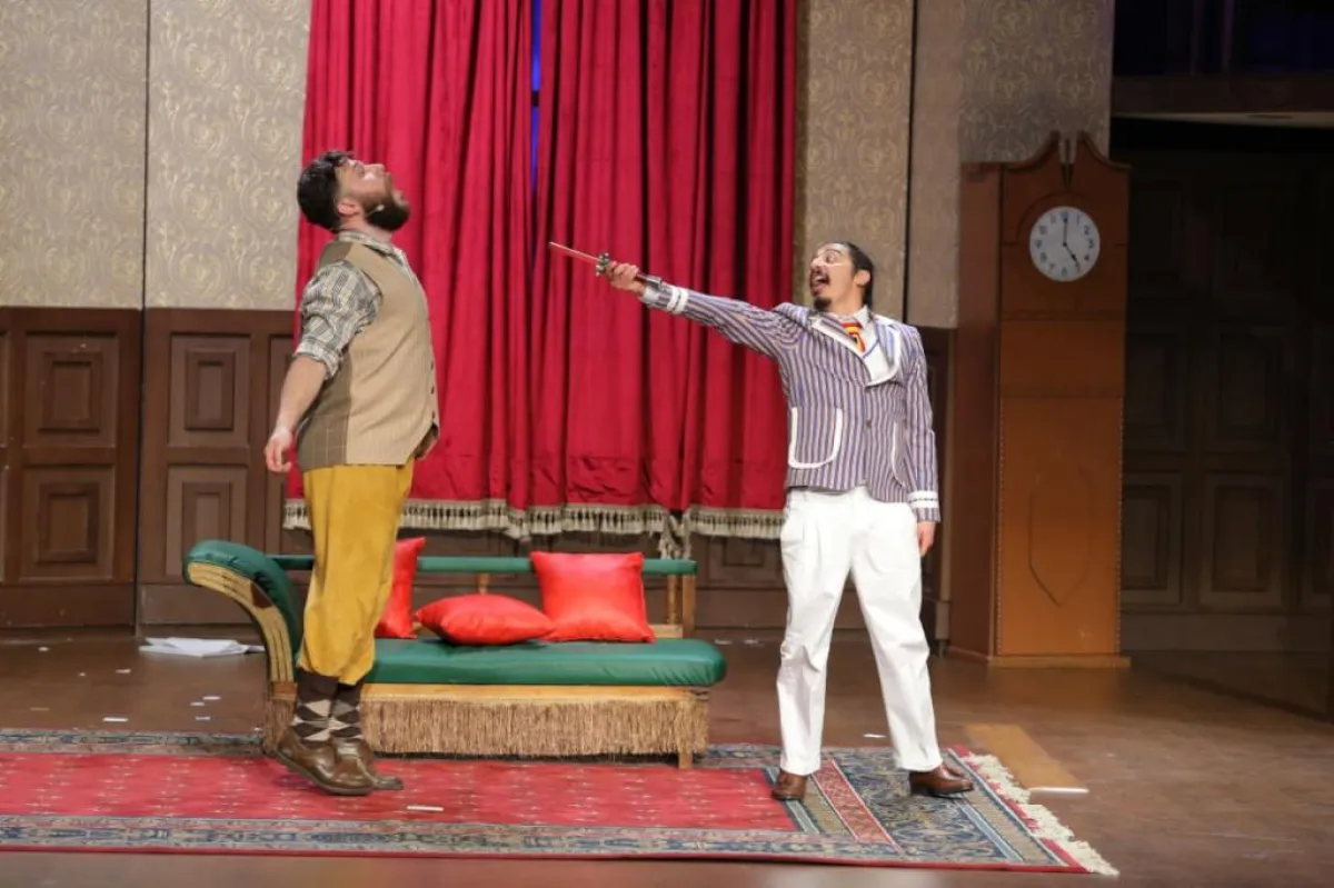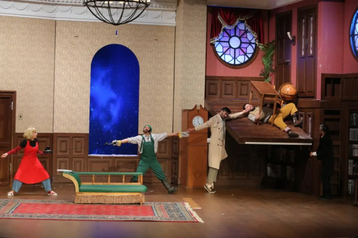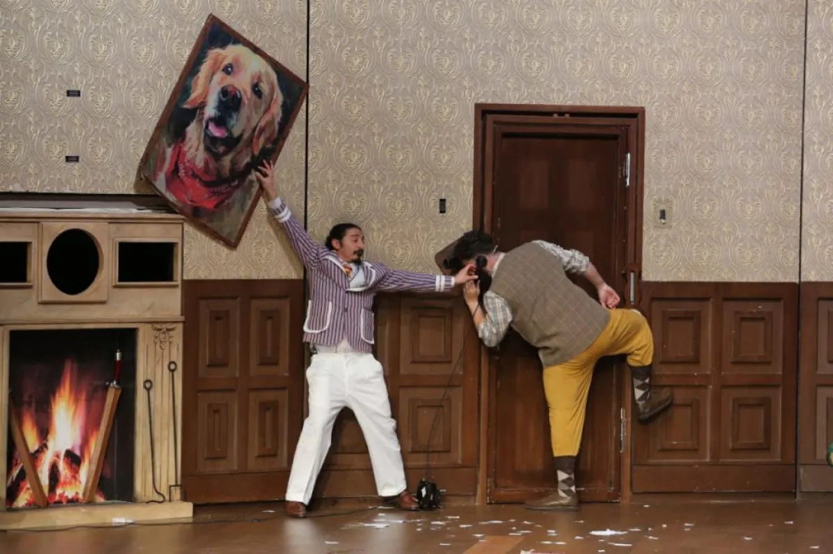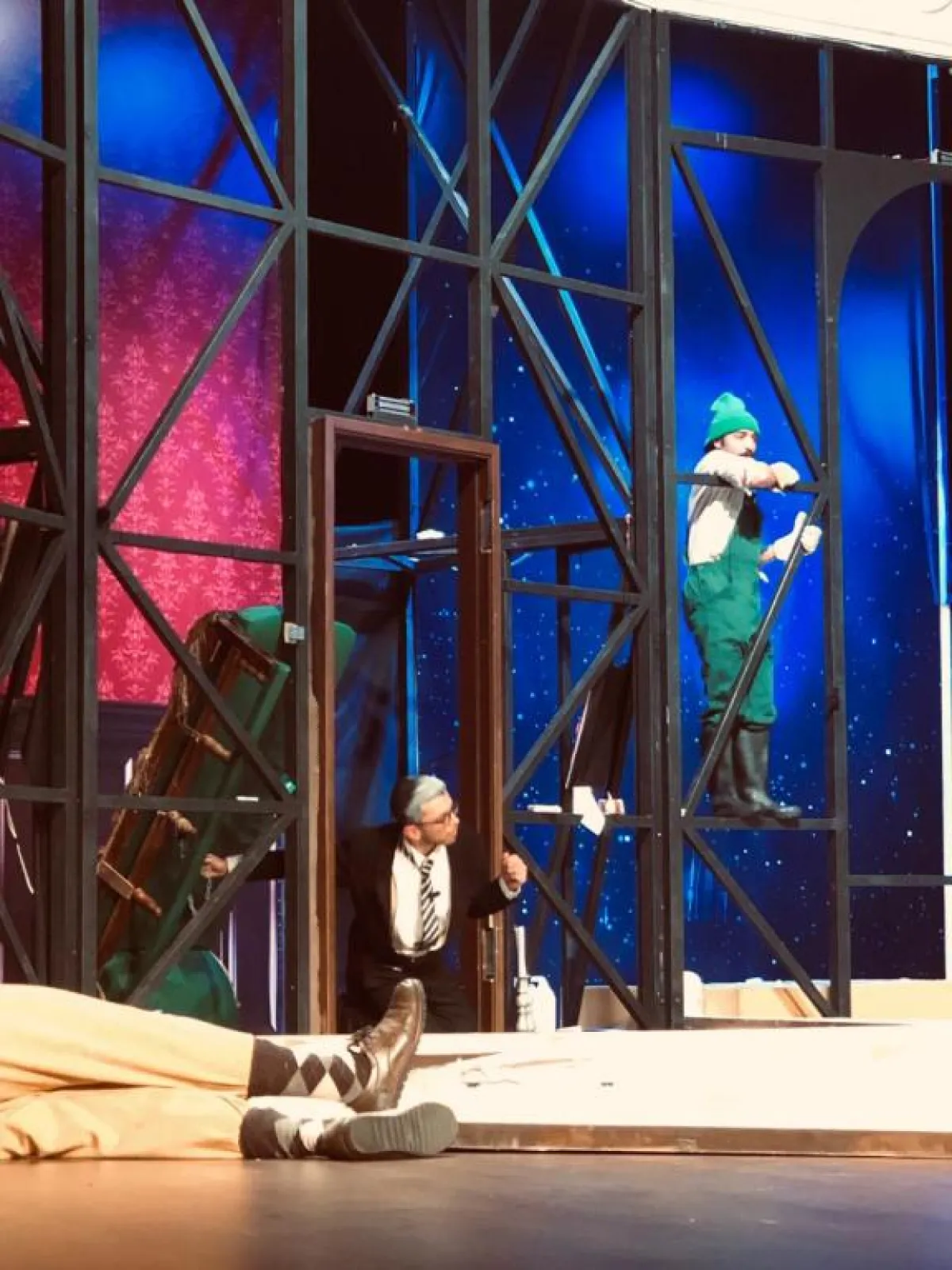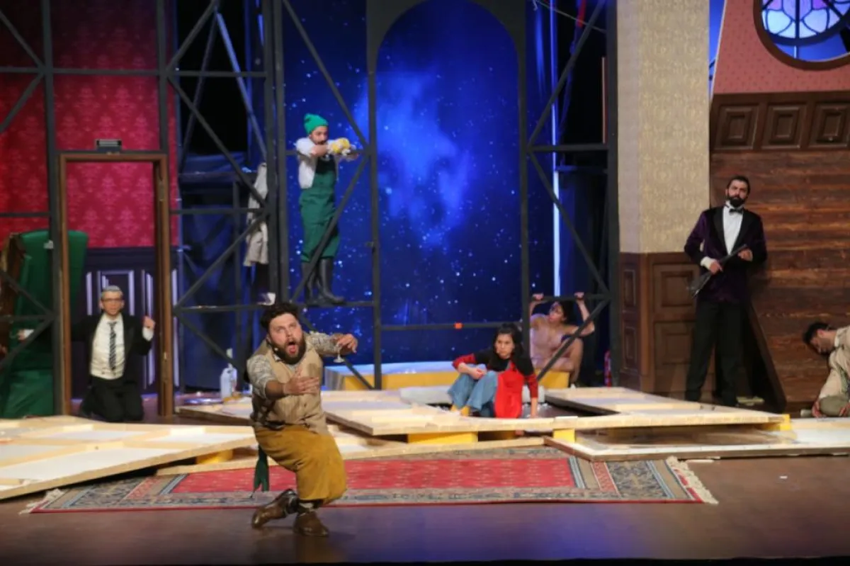 افتُتِحت المسرحية فبدأت الدعائم بالانهيار، ثم لحق بها الممثلون … كلما تابعوا العرض، كلما ازدادت الفوضى. لكن المجموعة مصرّة على مكافحة الأخطاء الواقعة جاهدة.