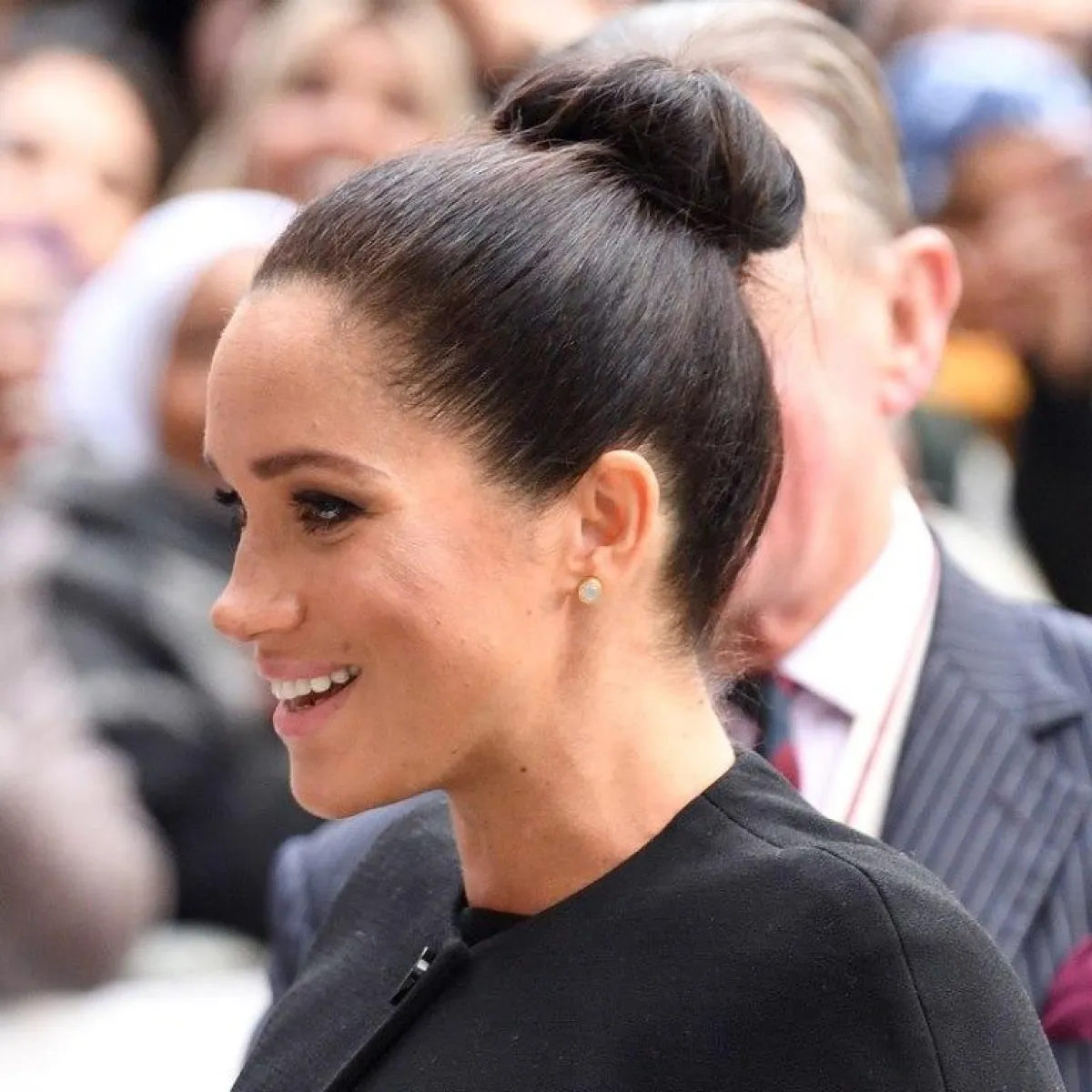 خلال إحدى زياراتها في يناير الماضي لرابطة جامعات الكومنولث، أطلت ميغان بتسريحة شعر أنيقة، عبارة عن شعر مشدود إلى الخلف مع عقدة على شكل كعكة مرفوعة. وقد عكست إطلالتها رغم بساطتها أناقة كلاسيكية جذابة.