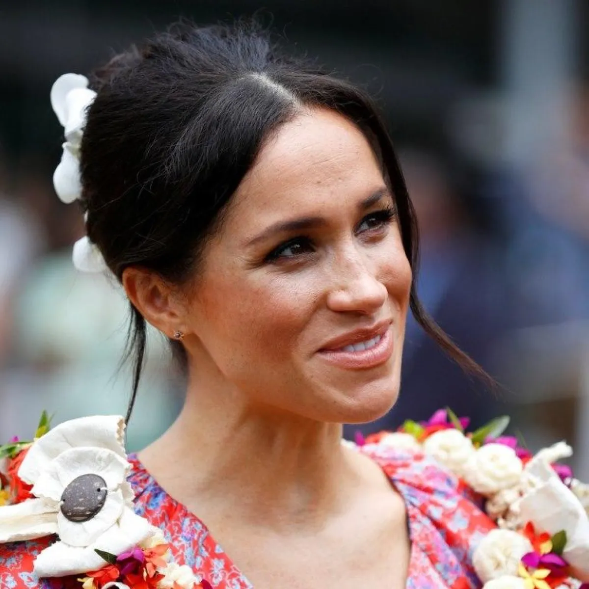 واحتفالاً بزيارتها الملكية الأولى لجزيرة فيجي في المحيط الهادئ. اختارت ميغان أن تزيّن شعرها بالأزهار الملوّنة. فعقدت بها شعرها إلى الوراء وتركت خصلات منه متحرّرة ومنسدلة بأسلوب عفوي يليق بأجواء الجزيرة المنعشة.