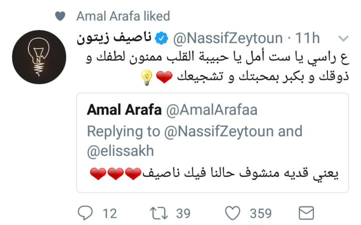 ناصيف زيتون تشكر بدوره الفنانات الثلاث وقال لـ اليسا أنه يهتم كثيراً لرأيها وتشجيعها له، متمنياً لها بالتوفيق وبالصحة، كما أكد أنه يكبر بمحبة وتشجيع أمل عرفة، أما داليد خليل فتمنى لها التوفيق والخير.