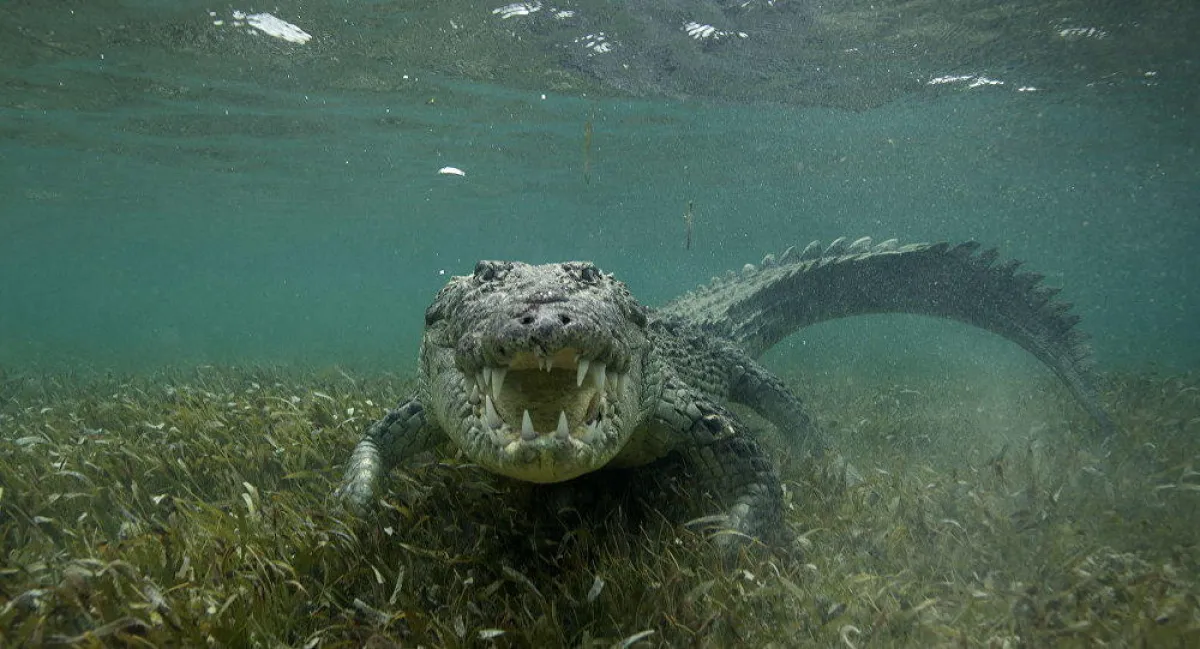 أسترالي يسبح في مغطس مع تمساح