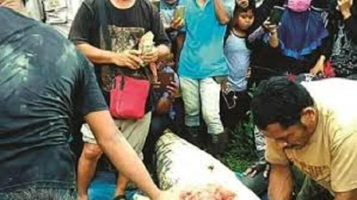 بعد 11 يوماً من البحث والتحري الدقيق ..عثرت السلطات الماليزيه على مهاجر من إندونيسيا، داخل معدة تمساح مفترس بعد اصطياد التمساح وقتله .