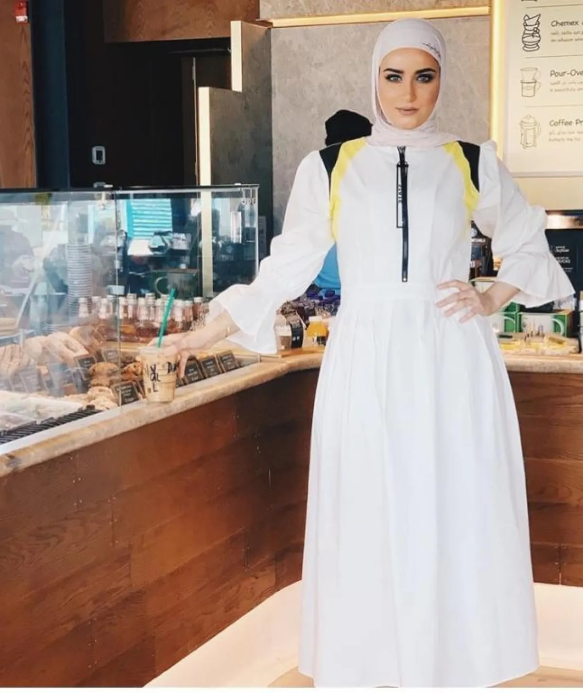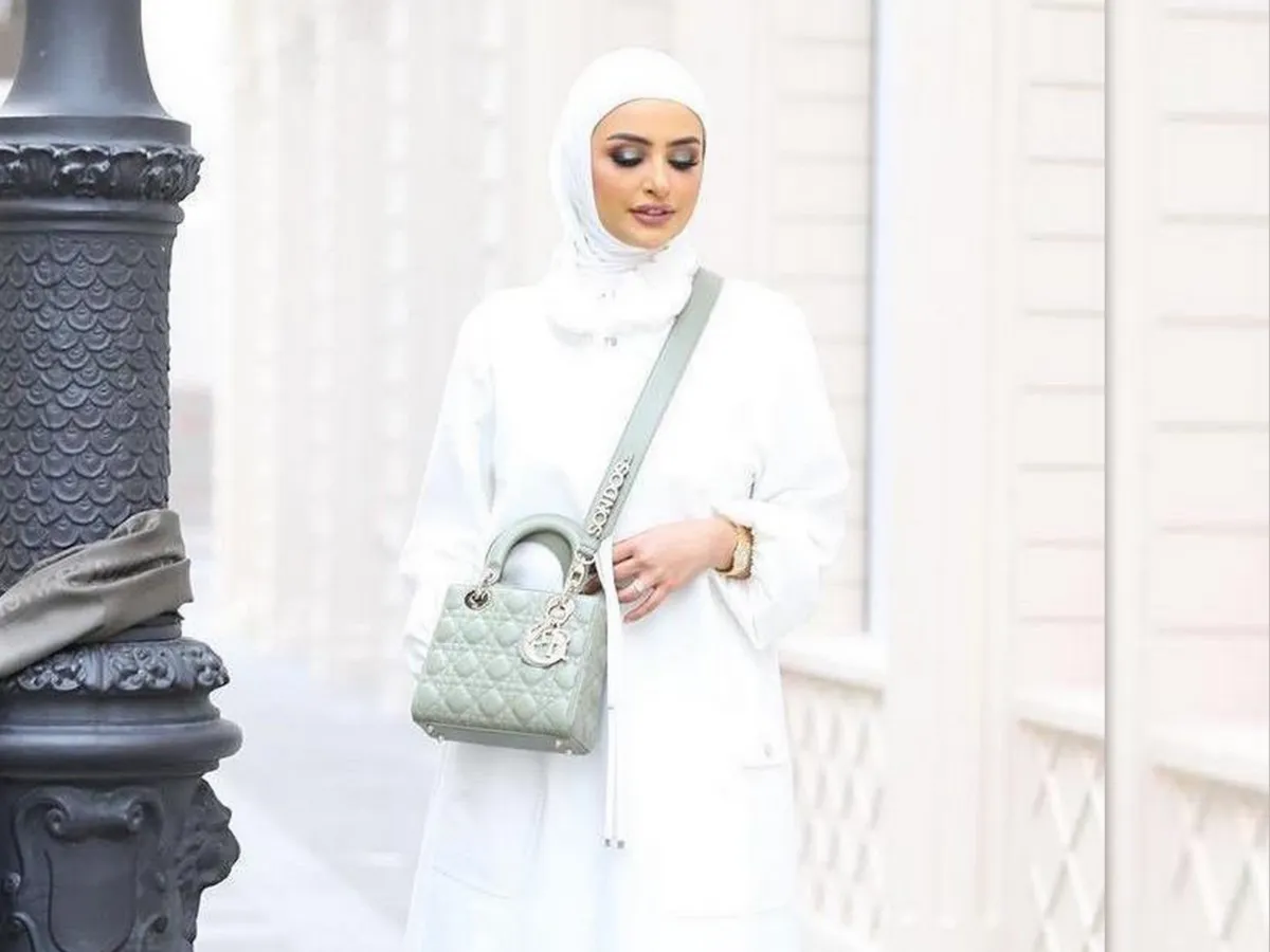 أما دلال الدوب، فبدأت باعتماد لونها المفضل الأبيض بشكل واضح من الآن، كاختيار الفستان الأبيض بالكامل، مع خطوط بيضاء وصفراء على الكتف، طبقت الطريقة الحيادية على هذا اللوك، ولكن بطريقة أكثر بساطة، باعتماد الطرحة البيبي روز المطرزة بلمسة فضية على الأطراف، وننصحكِ بأن تحتفظي بهذا اللون للحجاب للتألقي به في موسم الربيع مع الملابس الفاتحة.
