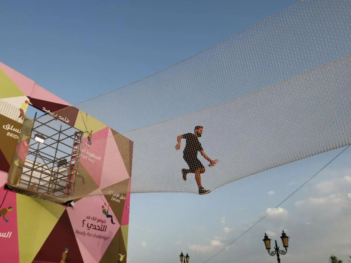 ويخوض مرتادي "الطلعة الربيعية" تجربة التحدي في فعالية "زبلاين" وهي لعبة مشوقة تعتمد على الانزلاق بين برجين على مسافة 100 متر من علوٍ شاهق، وتضم اللعبة جانب آخر للقفز عبر الحبل للهبوط نحو الأرض، وكذلك تجربة السير على الشبك التي أثارت إعجاب الأطفال والكبار.