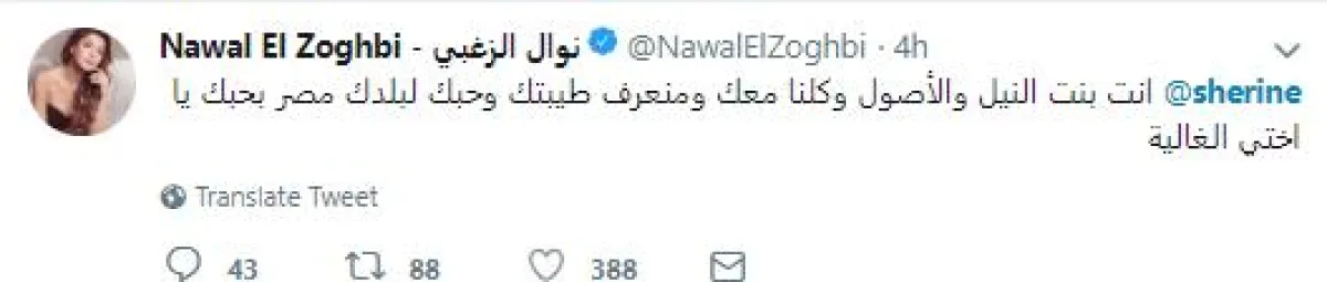 نوال الزغبي الصديقة المقربة من شيرين أبدت دعمها لشيرين قائلة: أنت بنت النيل والأصول، وكلنا معك ومنعرف طيبتك وحبك لبلدك مصر بحبك يا أختي الغالية.