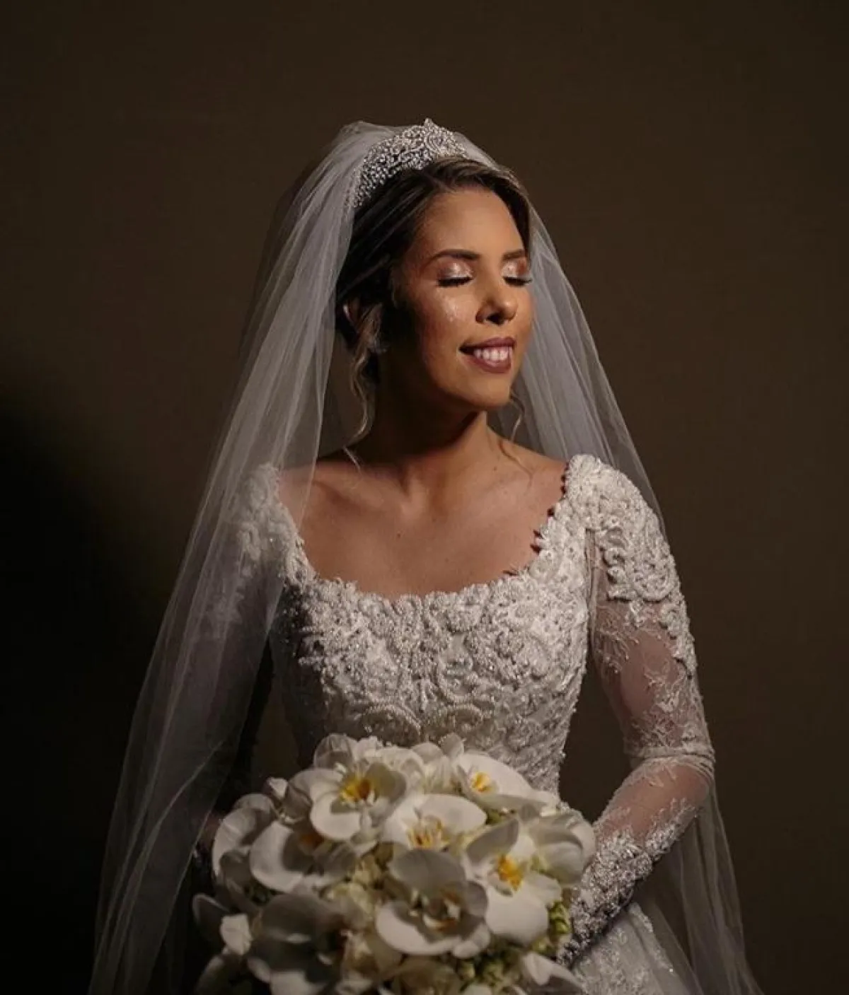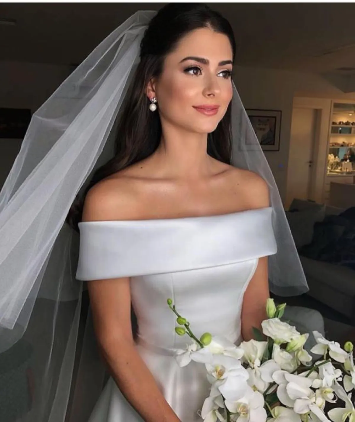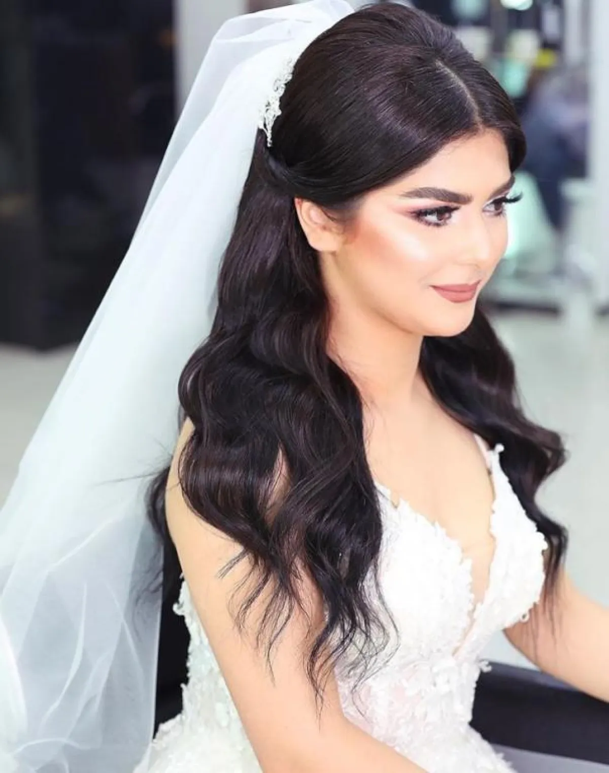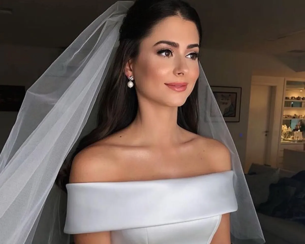 تسريحة الـbun البسيطة مع الفرق من المنتصف والشعر المنسدل من الخلف، سوف تلائم كثيرًا أجواء الحفل الفخمة، بخاصة وإن كان فستانكِ مليئًا بالتطريزات، كما أنه يناسب أكثر صاحبات الوجه الممتلىء مع الشعر الكثيف، اعتمديه من دون تاج مع طرحتكِ المطرزة، أما إن كان وجهكِ نحيفًا فالتاج سيكون خيارًا مناسبًا.