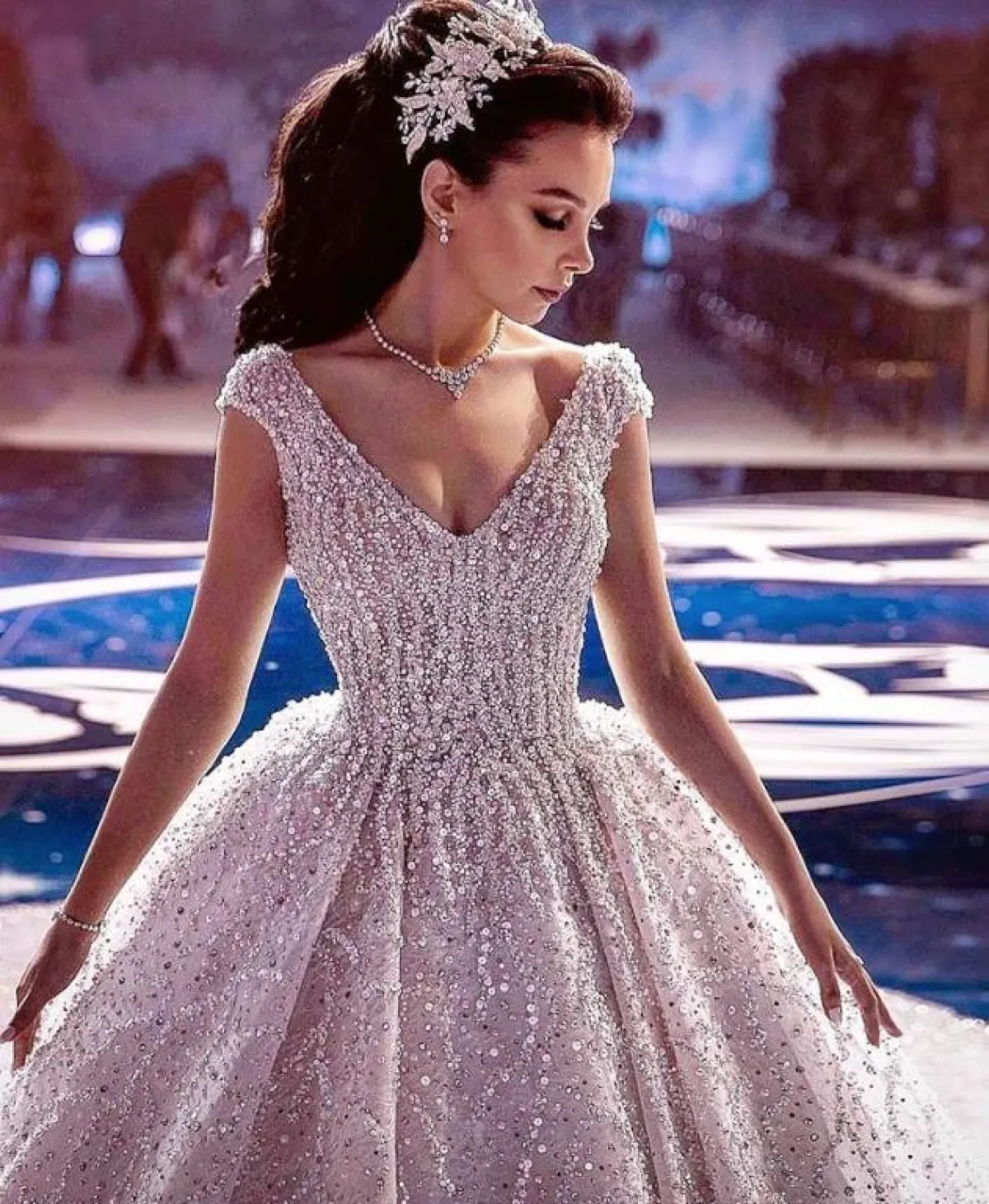 وإن كان فستانكِ ناعمًا، فاعتمدي على الشعر الأملس مع فرق على أخد الجانبين لتسريحة كلاسيكية ملكية.