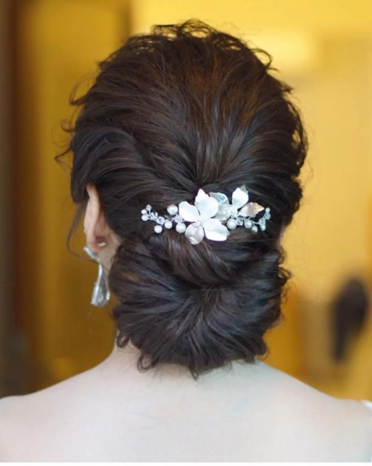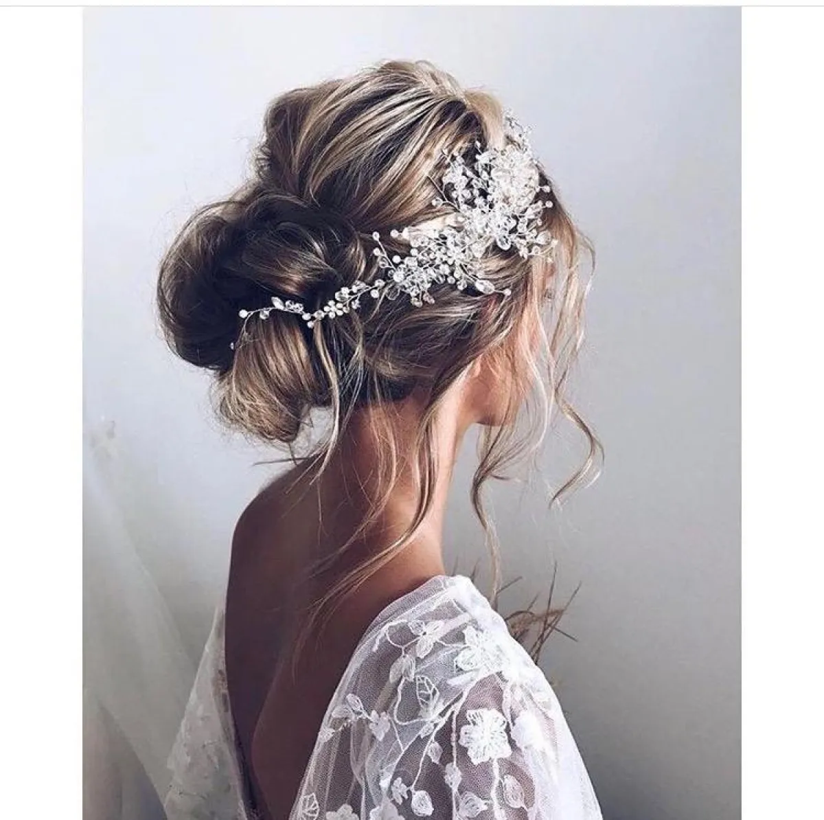 يمكنكِ اختيار الضفيرة المفرّغة لعمل كعكة منخفضة، منسدلة بشكل أنثوي، مع اكسسوار الشعر أو التاج لاطلالة بسيطة جدًّا من دون غرة، مع الطرحة المرفوعة لتسريحة كلاسيكية مستوحاة من الستينيات.