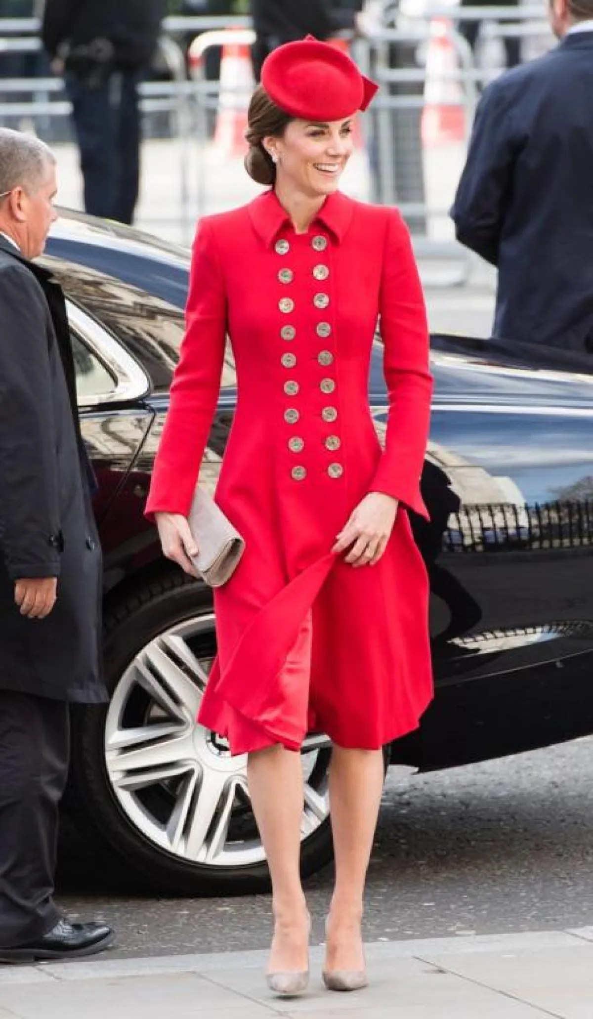 في إحدى المناسبات المسائية شاهدنا دوقة كامبريدج في اطلالة أنثوية غاية في الأناقة، ومواكبة للموضة في آنٍ واحد، حيث تألقت بفستان ميدي بقماش براق، كانت قد اختارته من دار “ميسوني” Missoni وقد نسقت معه حذاءً بكعب عالٍ، وحقيبة كلاتش أنيقة كلاهما باللون البيج.