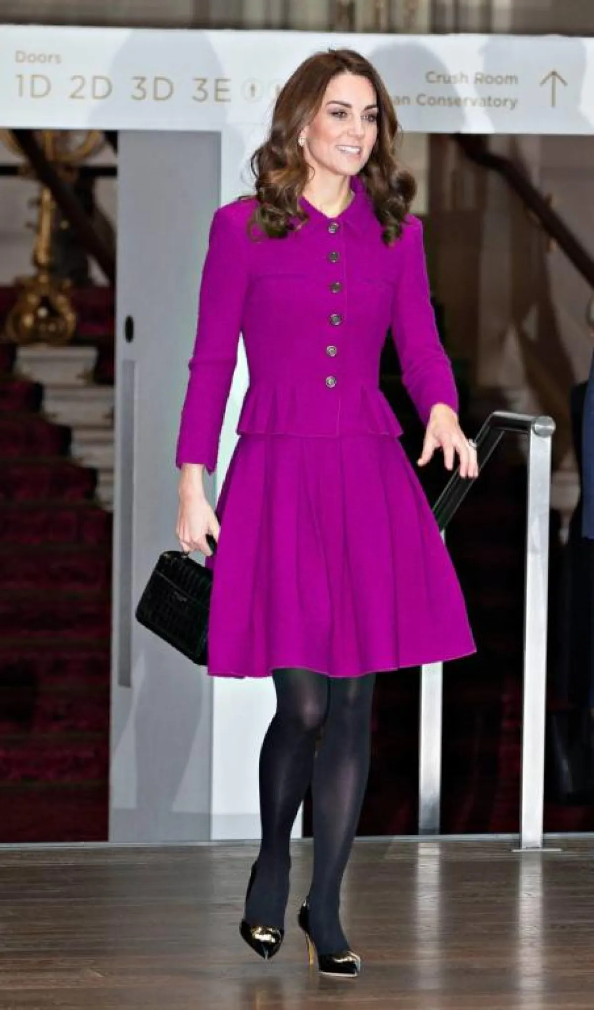 في أحد المشاوير شاهدنا كيت ميدلتون Kate Middleton في اطلالة مميزة، جمعت فيها بين النمط الشبابي الكاجوال مع لمسات من الأناقة، حيث اختارت قميصًا من الحرير باللون البنفسجي من “غوتشي” Gucci مزينًا بربطة على الرقبة، نسقت معه بنطلونًا أسود بخصر عالٍ، وحقيبة أنيقة من الجلد، وحذاءً بكعب عالٍ أسود.