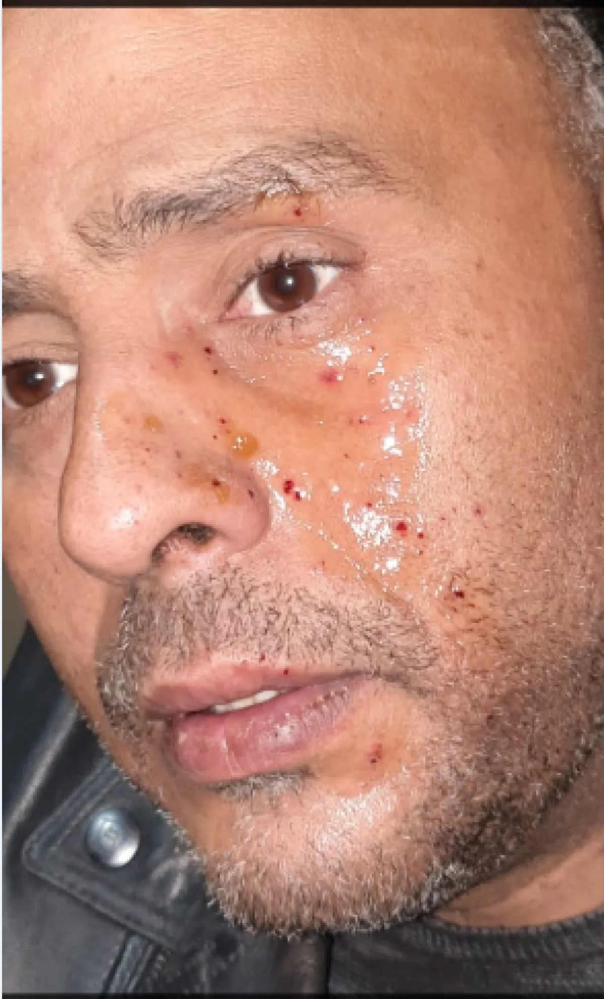 عبد المغني كان يقوم بتصوير أحد المشاهد وفوجىء بشظية تصيب وجهه وتسببت في إصابات متعددة في الوجه وكاد يفقد عينه اليسرى لولا العناية الإلهية.
