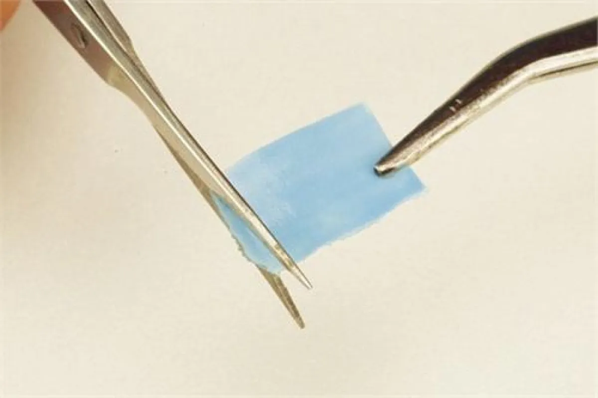1. ضعي على ورقة شمعيّة، مقصوصة على شكل الظفر، طبقة رفيعة جداً ومتوازية من "الجل" الشفّاف المرن. اطلي في كلّ الاتجاهات، ليمتدّ "الجل" على المستوى نفسه. ضعي الورقة تحت الأشعة ما فوق البنفسجيّة، لمدّة ثلاثين ثانية، وتأكّدي من أنّ طول الورقة المختارة وسماكتها يصلان إلى نصف "إنش".