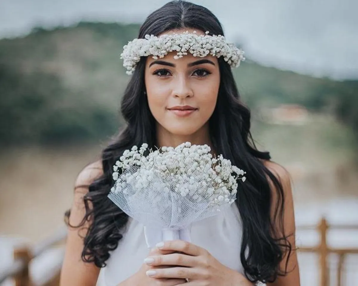 الشعر المموج يناسب كثيرا الشعر متوسط، فهو ليس كيرلي فلا يجعل شعرك قصيرا، لهذا يمكنك اختيار الشعر المنسدل مع فرق من المنتصف، وشينيو بسيط يزيدك طولا، أو اتركي الطرحة منسدلة للخلف، وتاج فخم بديلا عن الشينيو.