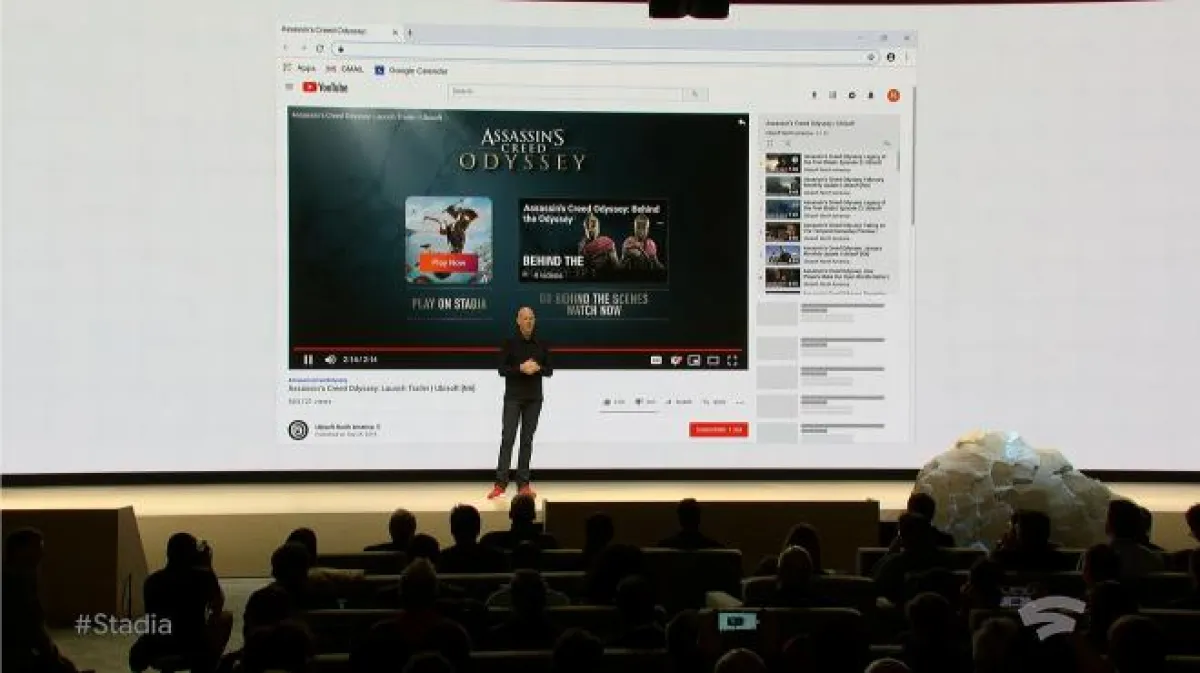الوعد الأوَّل والأكثر طموحًا من Stadia هو أنه يمكن تشغيلها على أي جهاز يتضمَّن متصفح "جوجل كروم"، فقد أظهر المؤتمر لعبة Assassin's Creed Odyssey التي يتم لعبها على أجهزة كمبيوتر الألعاب المنخفضة وPixel 3 والكمبيوتر اللوحي.