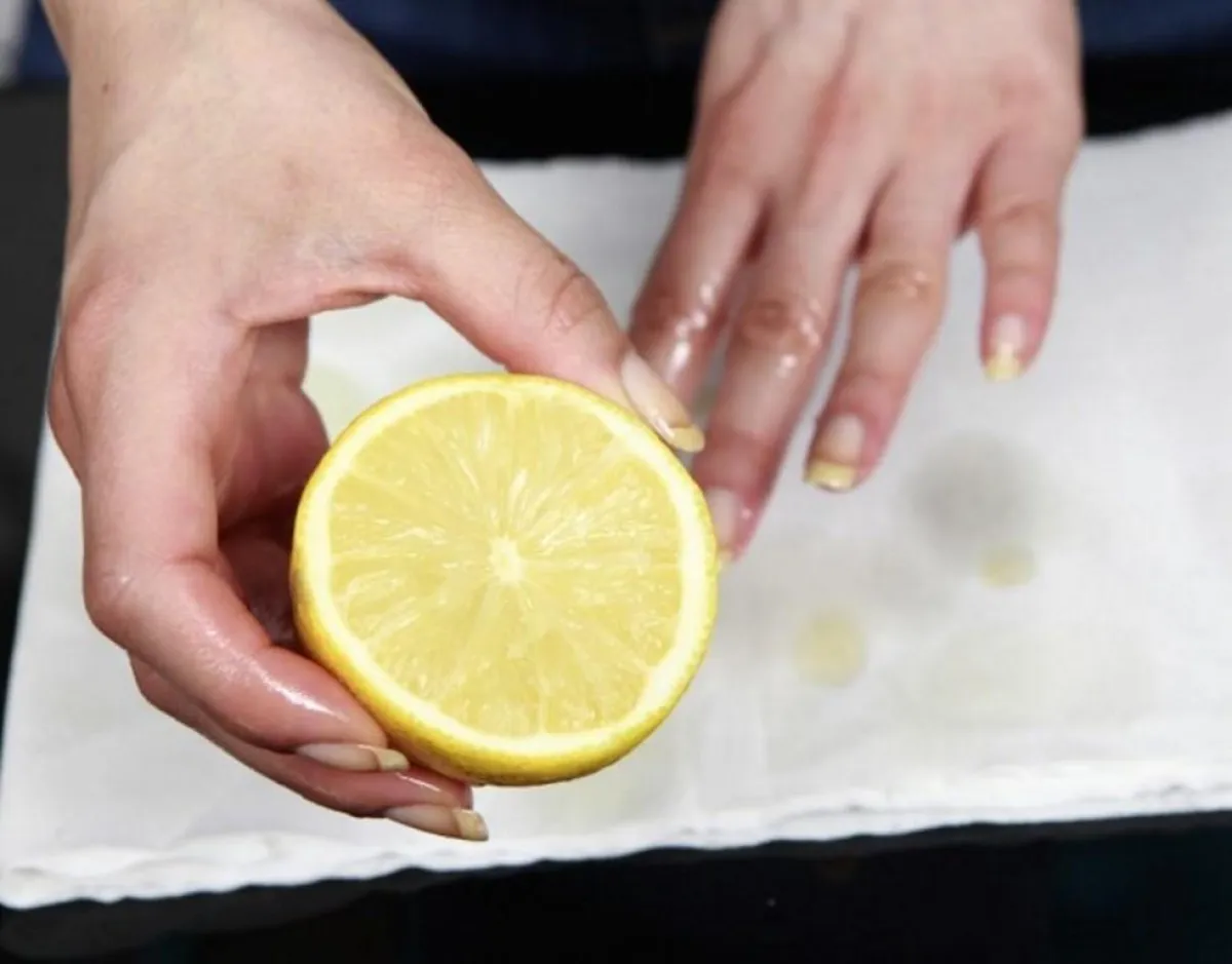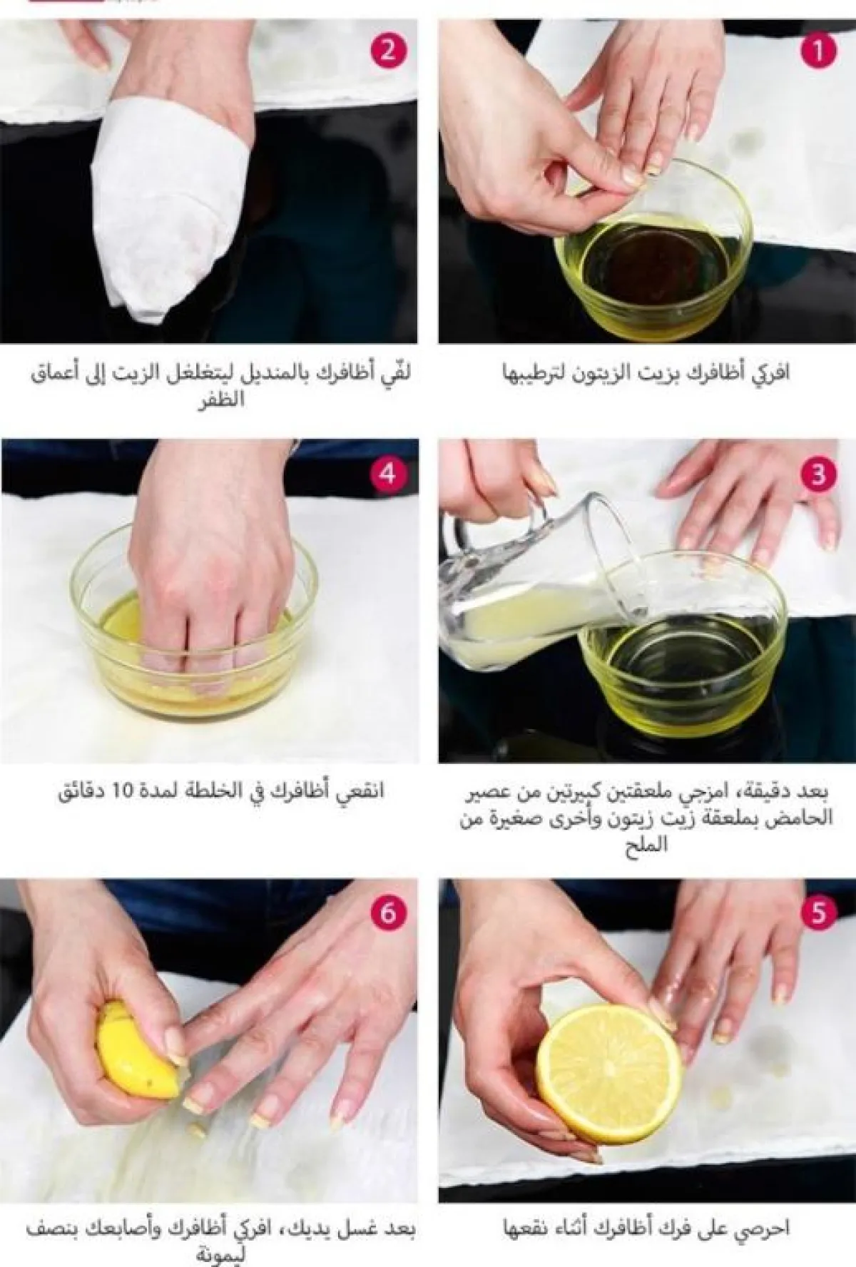بعد غسل يديك، افركي أظافرك وأصابعك بنصف ليمونة لمدة 10 دقائق.