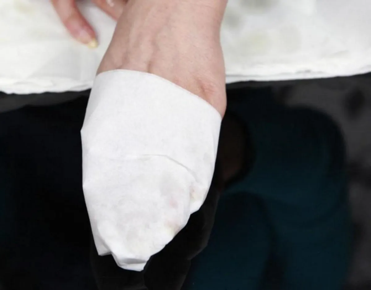 لفّي أظافرك بالمنديل ليتغلغل الزيت إلى أعماق الظفر.