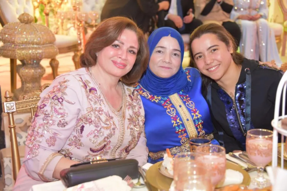 جلست العروس بعد ذلك في "المرتبة" المنصة المخصصة لها، وتناوب الضيوف على أخذ صور معها لتوثيق اللحظة، وكانت الصورة الأولى مع الفنانة إلهام شاهين التي أبدت إعجابها بالزيّ وبالعرس المغربي، وعبّرت عن فرحتها باقتسام هذه الفرحة مع زميلتها دينا التي كانت أميرة هذا الحدث.