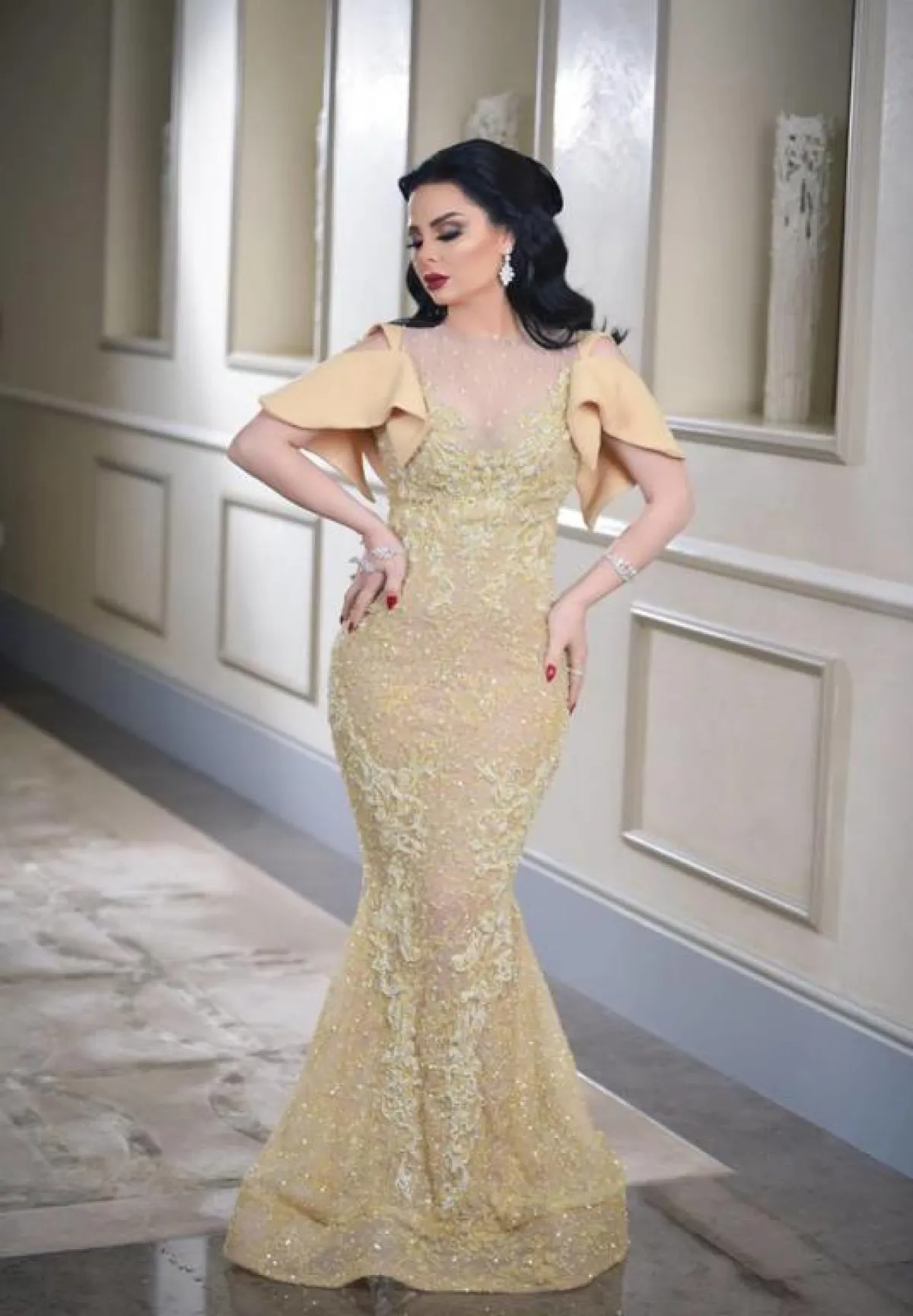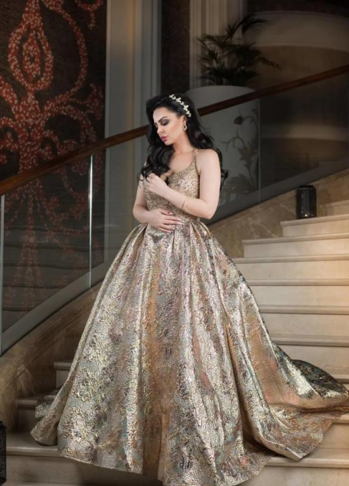 اطلالة غير موفقة في فستان باللون الفضي: