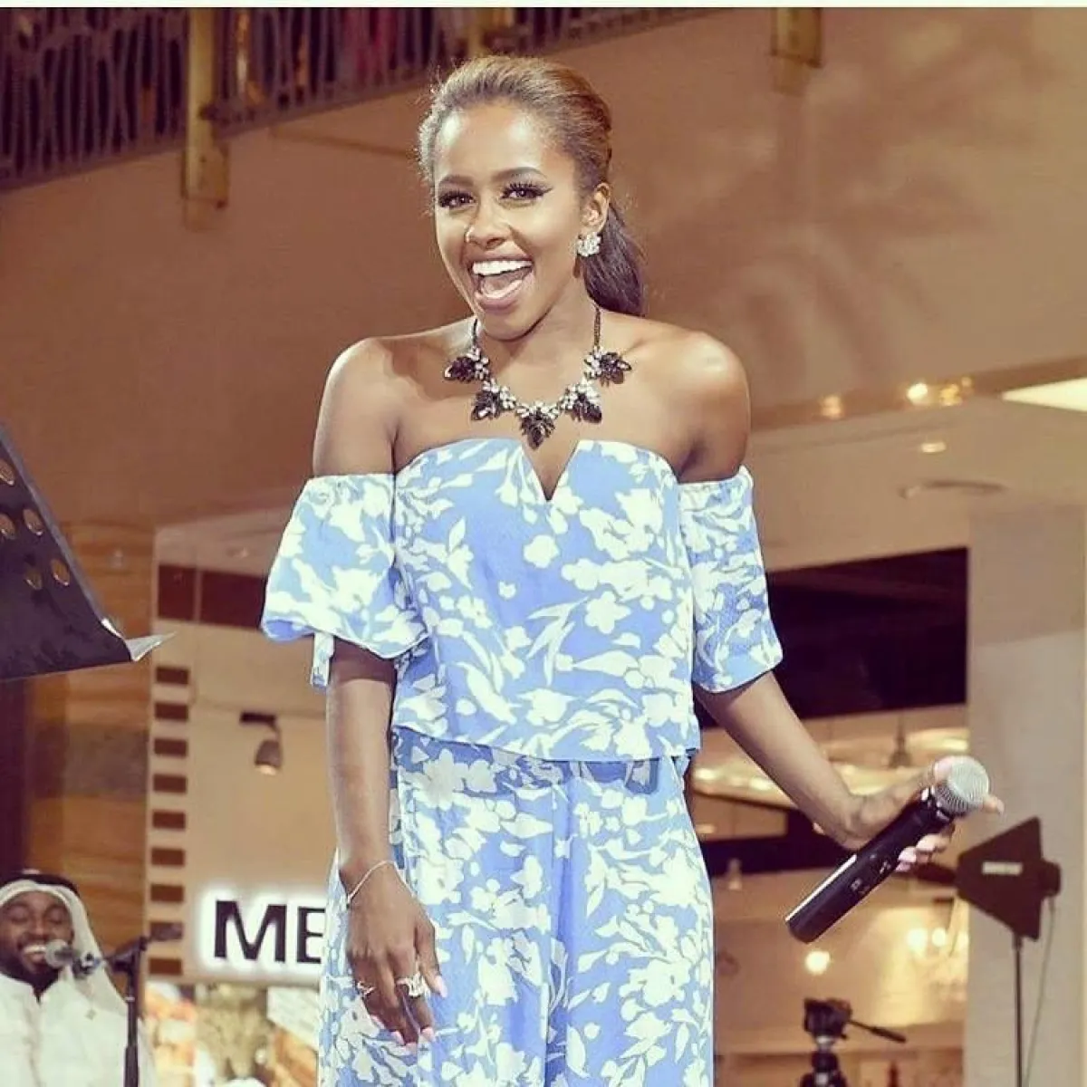 وتعدّ داليا مبارك أول فنانة تشارك في حفل رسمي مع مجموعة من فناني السعودية.